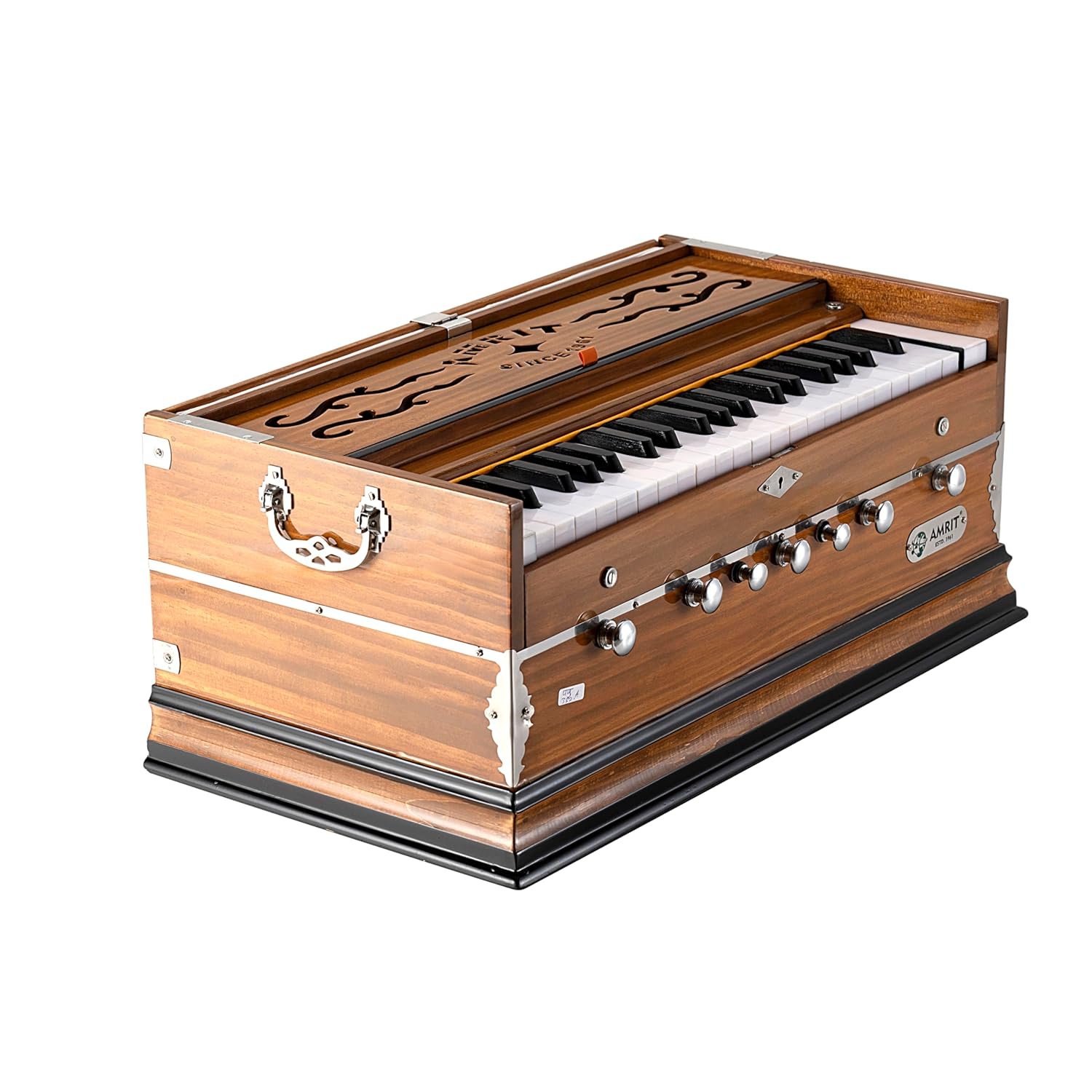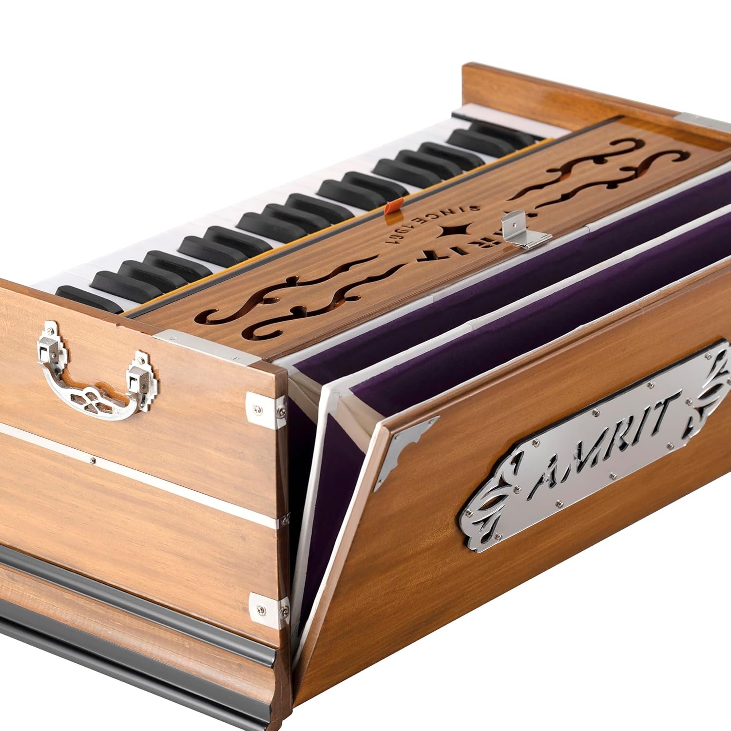 PRODUCT OF AMRIT HARMONIUM INDUSTRIES. Amrit Harmonium Industries is making harmoniums since 1961. It is one of the biggest harmonium manufacturing unit in India producing harmonium more than 2000 per month. Amrit Harmonium is the combination of old heritage technique mixed with modern day technology that goes hand in hand to provide the best quality harmonium. With its in-house wood drying plant the wood is drying to a certain temperature so that it does not bend or tear under any weather. Amrit Harmonium has been making harmonium for all the big brands of India since 1961 and now decided to launch their own Brand by the name of “AMRIT” giving all its customer the highest quality Harmonium and very affordable price. While folding harmoniums are certainly very popular, there are two definite advantages to the standard box style: 1) Sound: On a standard boxes naturally produce a warmer, richer tone because the resonate surface is not physically broken into two or more pieces. 2) Durability: Folding harmoniums are prone to issues specific to all the extra moving parts. A simple standard box will have none of those problems. It’s also good to note that most standard harmoniums are still very portable. Ours always comes with a padded gig bag, and many of them will weigh the same or even less than similar folding models.