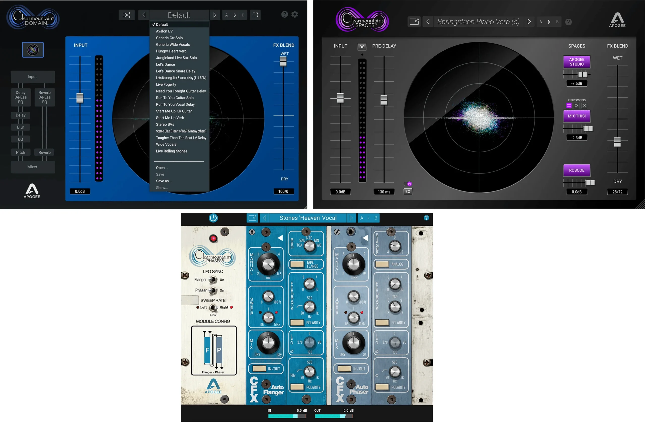 • Clearmountain’s Domain: This multi-effects processor combines delays, harmonizers, de-essers, EQs, and saturation effects, all interconnected through a modeled large-format mixing console. It uses impulse responses from Bob’s personal echo chambers, allowing you to recreate classic reverbs and delays heard on landmark records. Presets replicate signature sounds like the “Let’s Dance” snare and “Start Me Up” guitar reverbs, enabling precise emulation of legendary mixes.