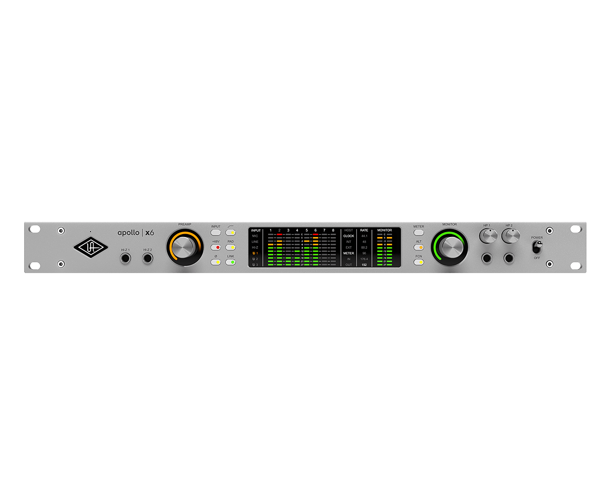 Produce hits with our most advanced Apollo x6 to date. Featuring highest-resolution audio conversion, two Unison™ mic preamps, and realtime UAD processing — which lets you record through plug-ins from Neve, API, Manley, Auto-Tune, and more without latency — Apollo x6 puts decades of inspiring analog sound right in your rack.