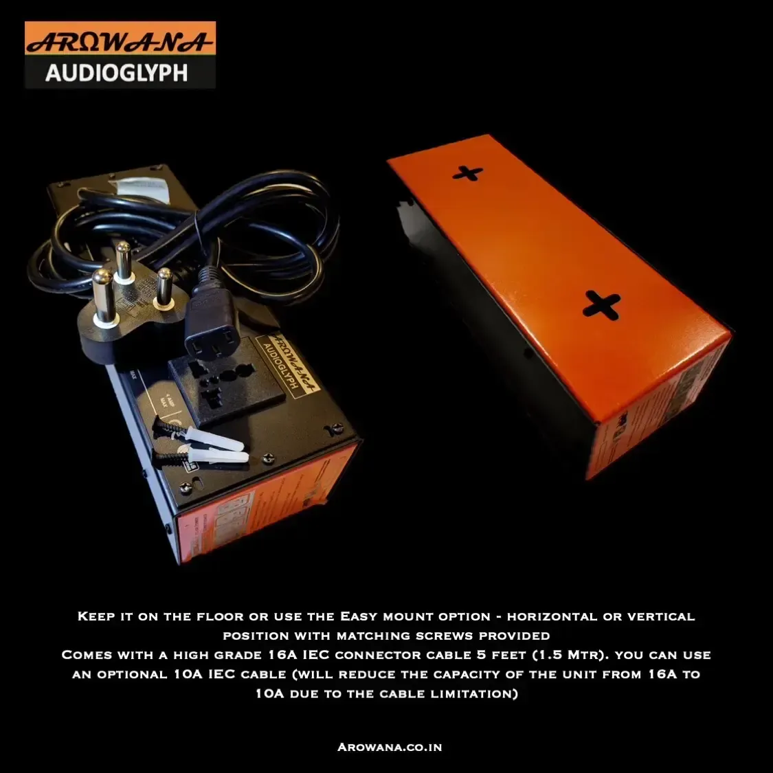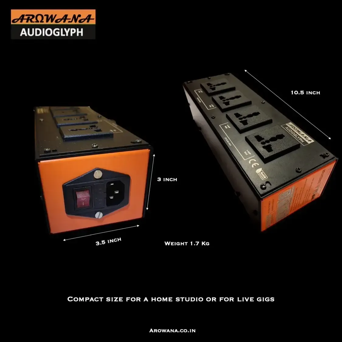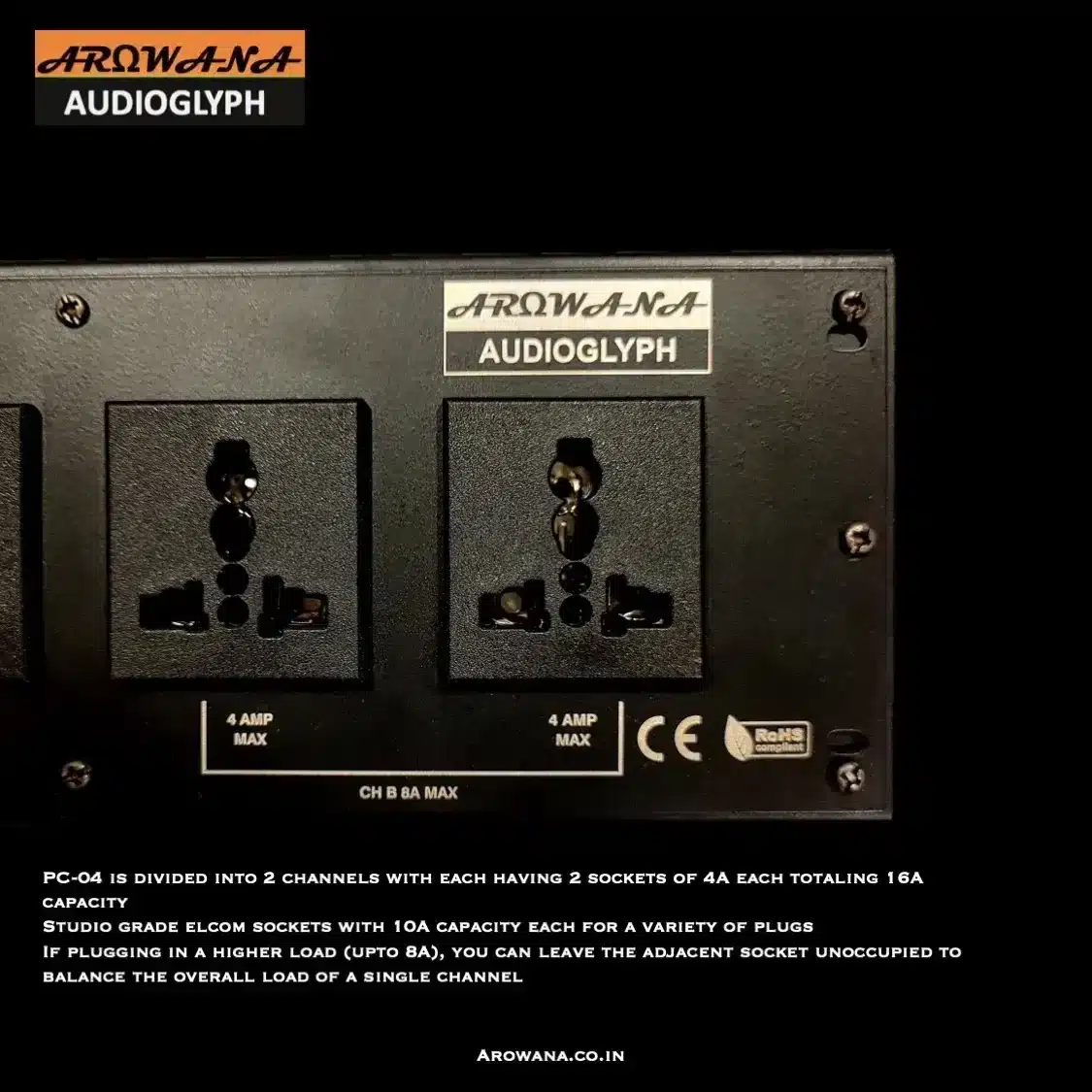 The Arowana AudioGlyph PC-04 is a versatile and compact audio power conditioner designed for studio, live gig, audiophile home theater, and gaming setups. With its rugged all-metal construction and proprietary PAF circuit, it ensures reliable performance and durability. The unit supports up to 16 Amperes (4×4), meaning your entire rig can be powered through one safe and clean source.