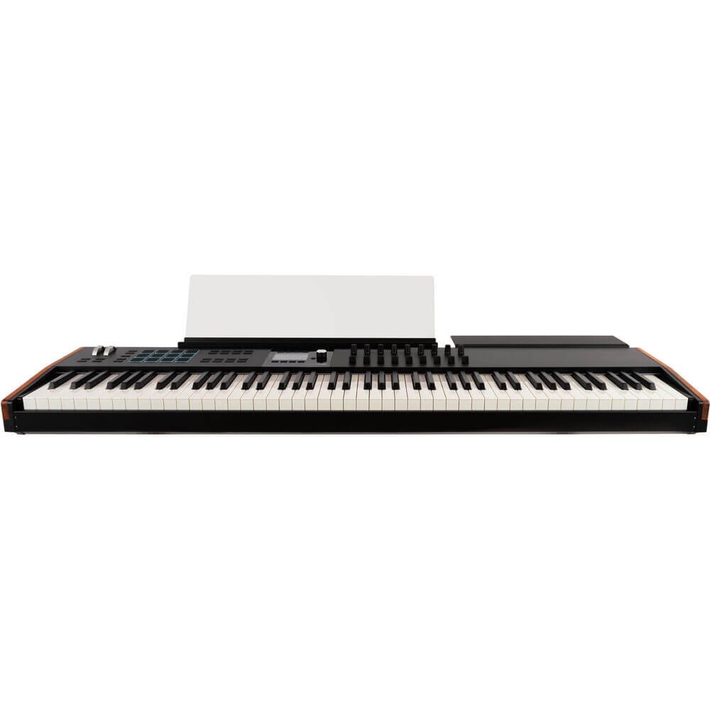 The KeyLab mk3’s most visible feature is its new 3.5-inch full-color display, which supports onboard integration with Arturia Software, Ableton Live, FL Studio, and other applications for reliable visual reference during performances and recording sessions. Arturia included separate stands for sheet music and a laptop or other smart device with this 88-key model.
