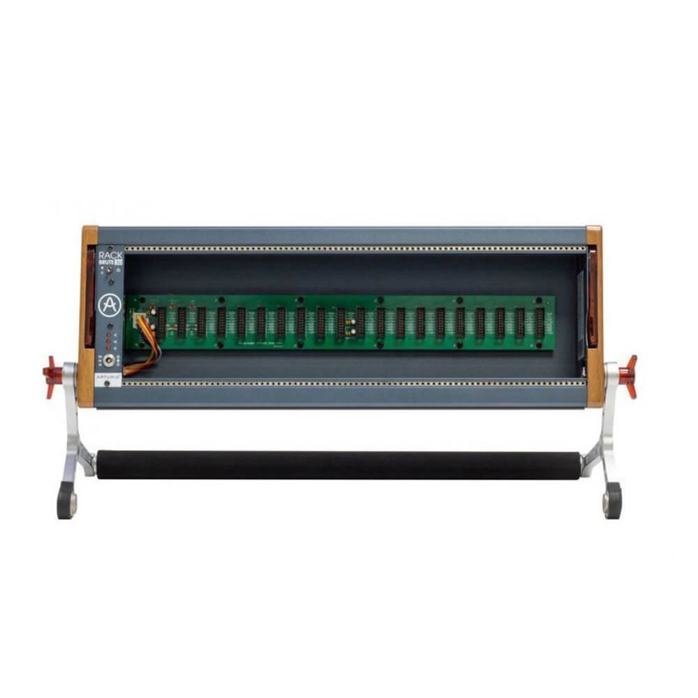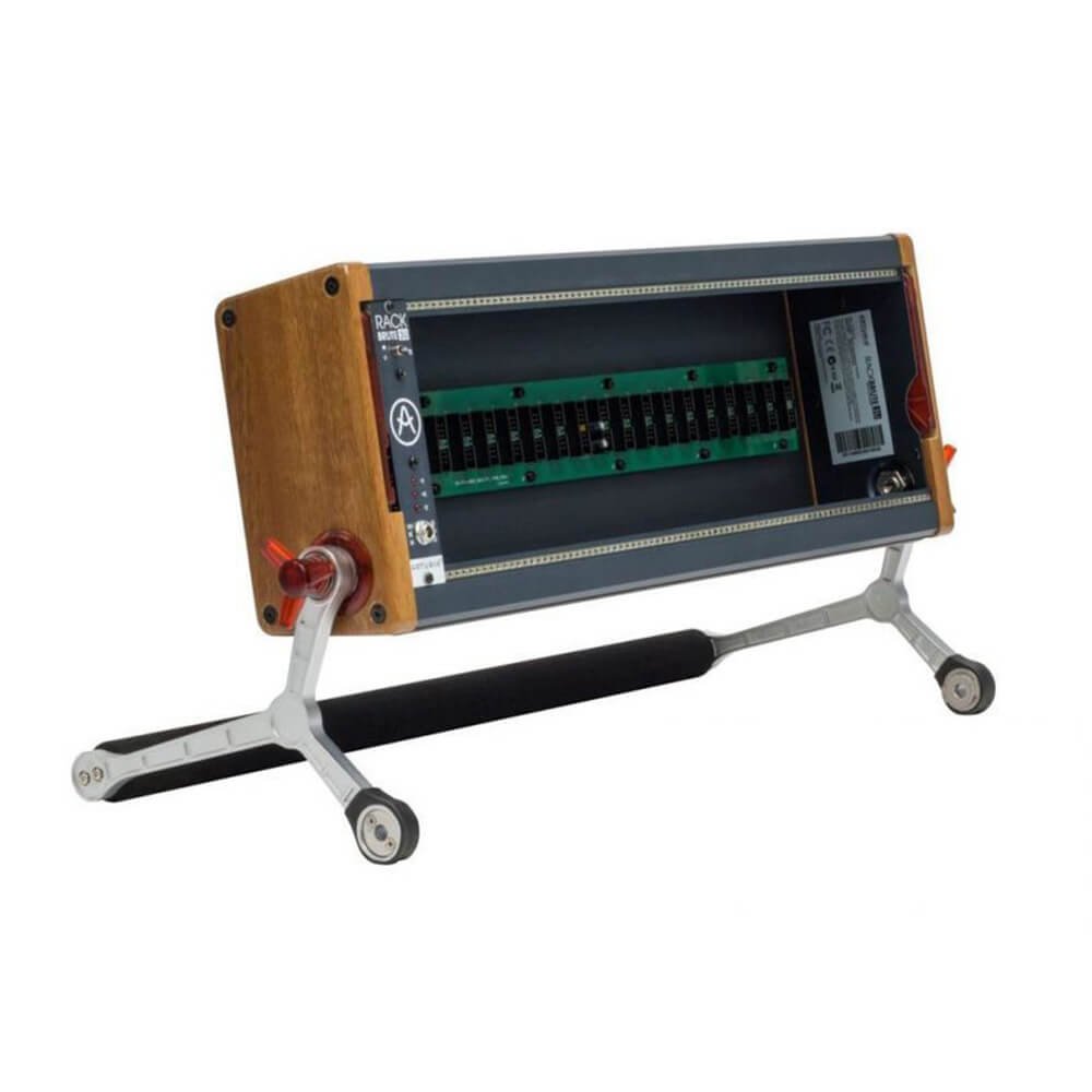 Modular gear is a valuable commodity that requires a versatile housing and security system to handle it. At first glance, you’ll see that this is a well fitting 3U, 88 HP case constructed of a light yet robust aluminum chassis with wood side panels. RackBrute appears to be a basic box, but it is far from that. It has many smart additions, such as the included +12V / -12V / +5V power supply, which keeps everything running, and the multi-position handle system, which not only allows you to carry your collection easily, but also allows you to deploy an optimal operating angle, whatever your preference is.