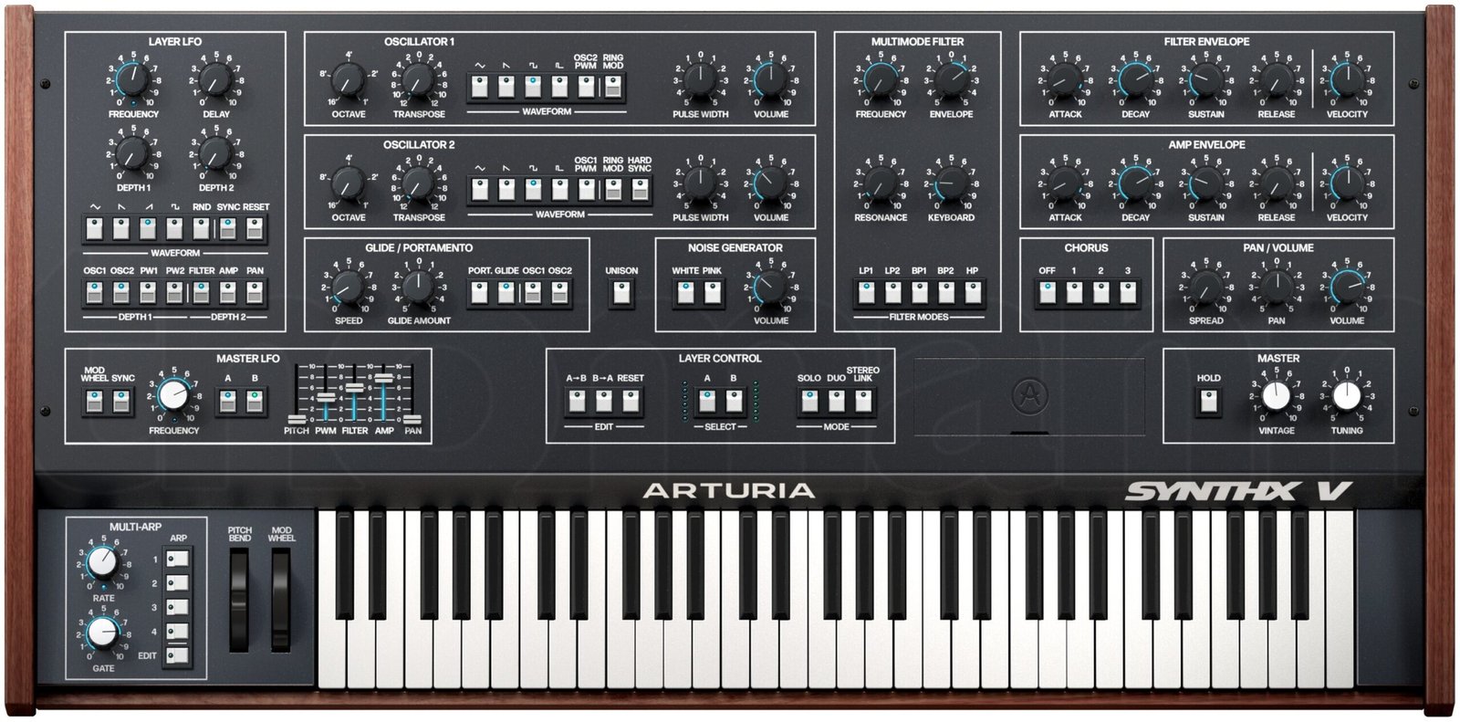 As Arturia’s meticulous research and re-creation of legendary analog gear continues, so does the expanse of several Sweetwater synthesists’ digital arsenal. Enter Synthx V, a one-to-one revival of the game-changing polyphonic bi-timbral synthesizer used by artists spanning Jean Michel Jarre, Tangerine Dream, Stevie Wonder, and much more. Onboard lies the synthesizer’s recognizable array of oscillators, chorus effects, a multimode filter, and, of course, massive modulative potential by way of a per-layer LFO and master LFO combination. Collectively, Synthx V’s onboard presets, macro controls, and external effects rack make a seamless sound sculpting palette for any discerning synthesist — sonically, your results will rise to the summit.