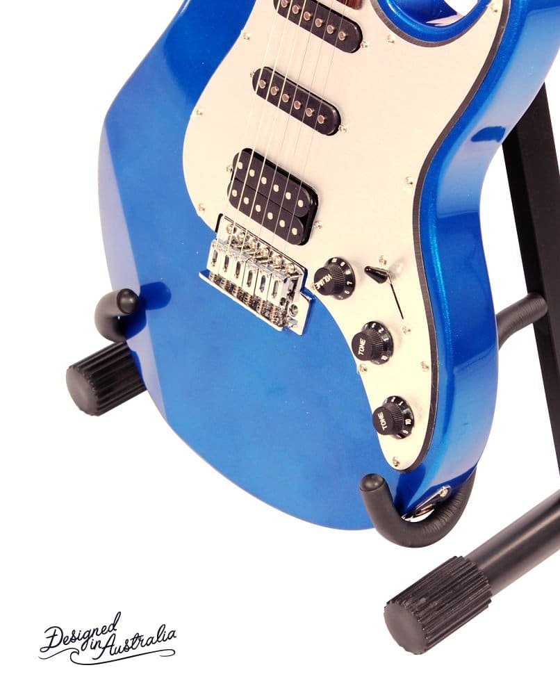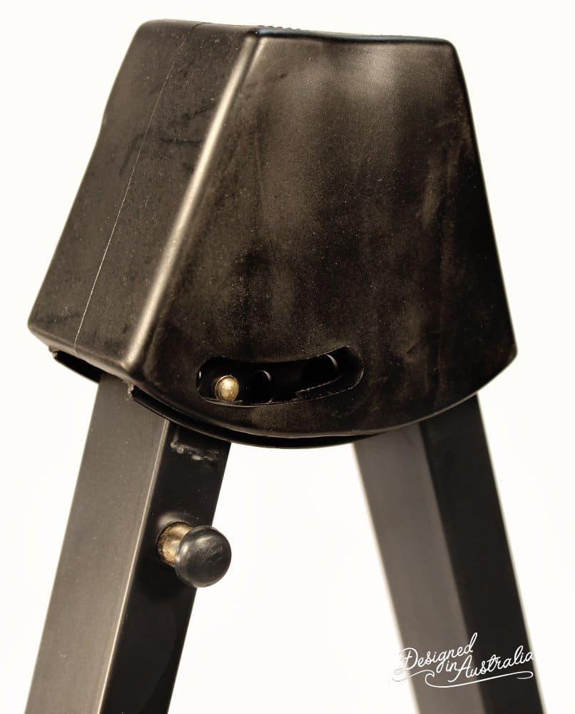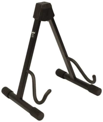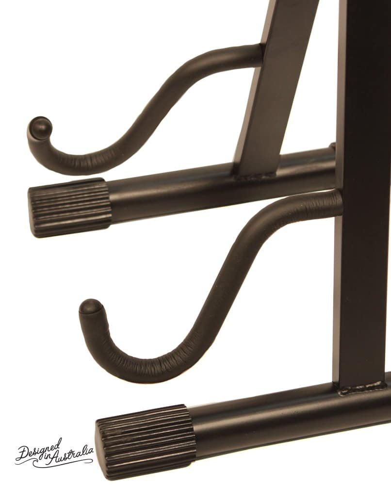 Black A-frame stand, features curved supports and non slip rubber feet.