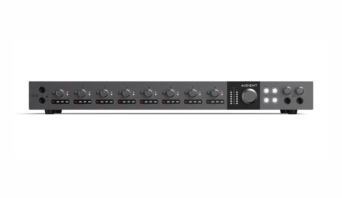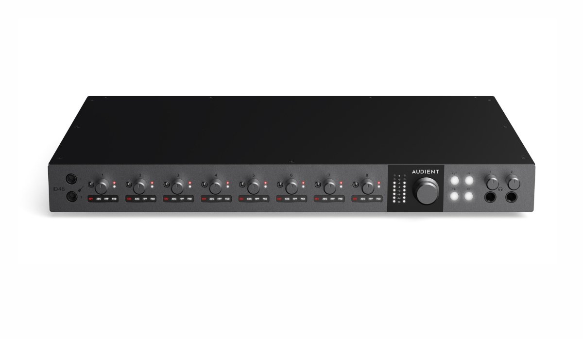 Packing eight state-of-the-art Audient console mic preamplifiers, cutting-edge 32-bit ESS converters, and all-new Switchable Analog Insert technology into a rugged, attractive all-metal 1U chassis, iD48 seamlessly blends blazing audio performance with fluid ease of use. Add to that essential professional features like 16-channel ADAT expandability, eight analog inserts, advanced, customizable monitor control, a seamlessly integrated software mixer, innovative talkback implementation, dual sets of speaker outputs, and much more, and D48 is primed to supercharge your workflow as it elevates the quality of your studio output.