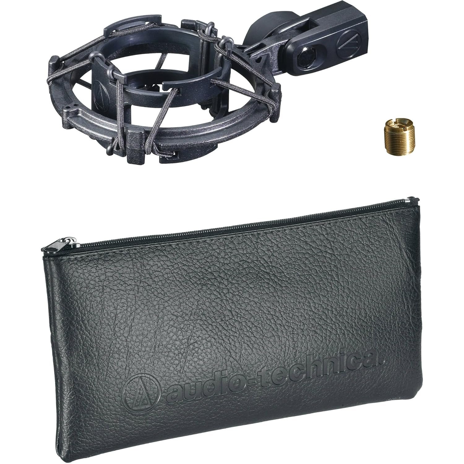 Includes AT8458 shock mount for 5/8″-27 threaded stands; 5/8″-27 to 3/8″-16 threaded adapter; soft protective pouch.