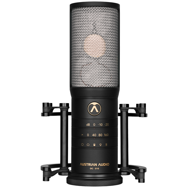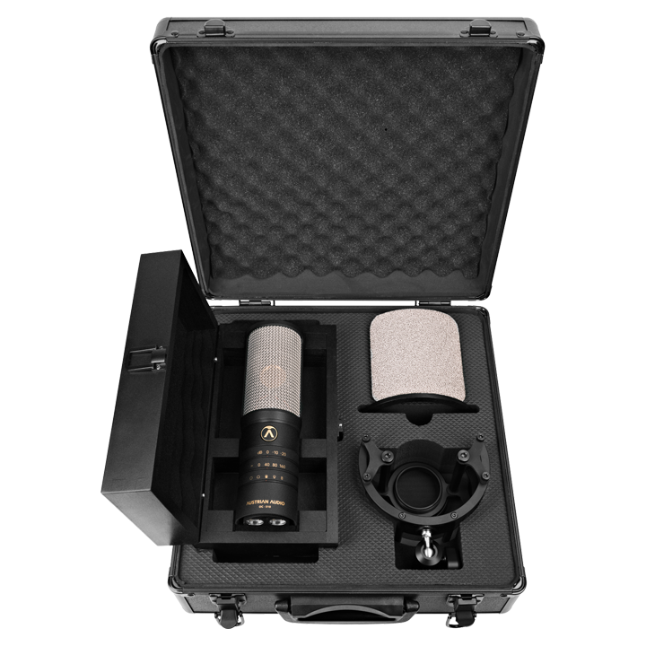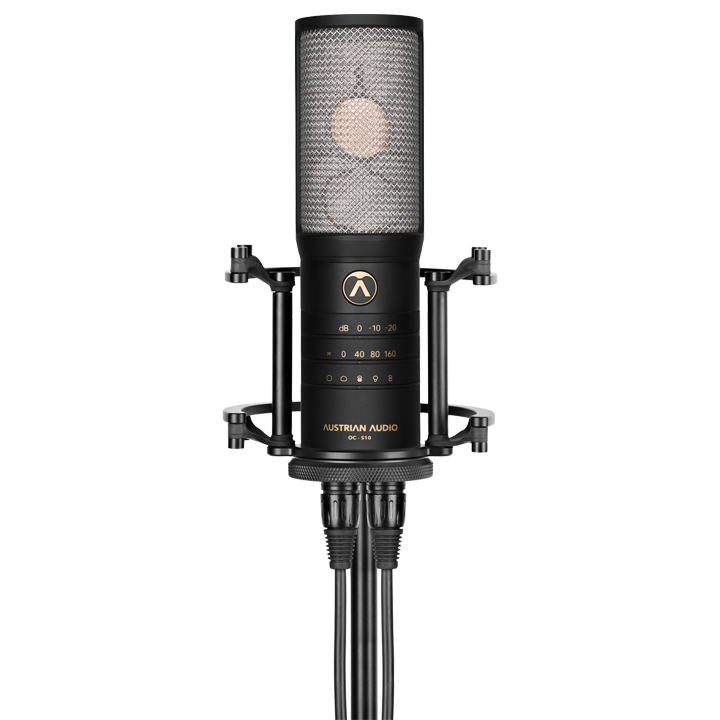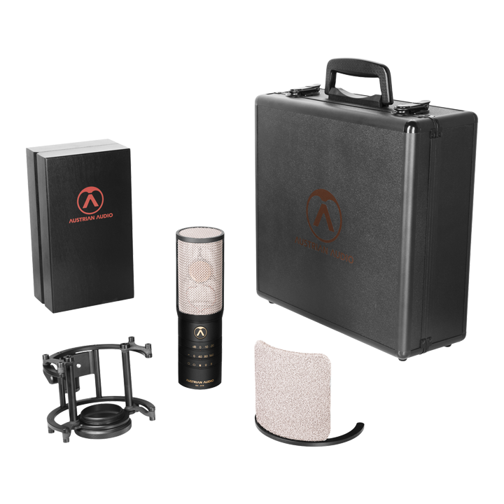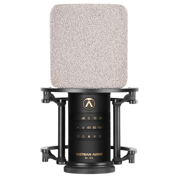 The Austrian Audio OC-S10 Studio Set combines a professional large-diaphragm condenser microphone with carefully selected accessories for the highest demands in everyday studio work. Developed for the precise recording of lead vocals and solo instruments, the microphone impresses with its flexible adaptability to a wide range of recording situations. Five selectable polar patterns – omnidirectional, wide cardioid, cardioid, hypercardioid, and figure-of-eight – ensure targeted control of the recording range. This is supported by three switchable low-cut filters at 40 Hz, 80 Hz and 160 Hz, which effectively minimize interfering low-frequency components, as well as switchable -10dB and -20dB pads for distortion-free handling of high sound pressure levels of up to 157 dB SPL.