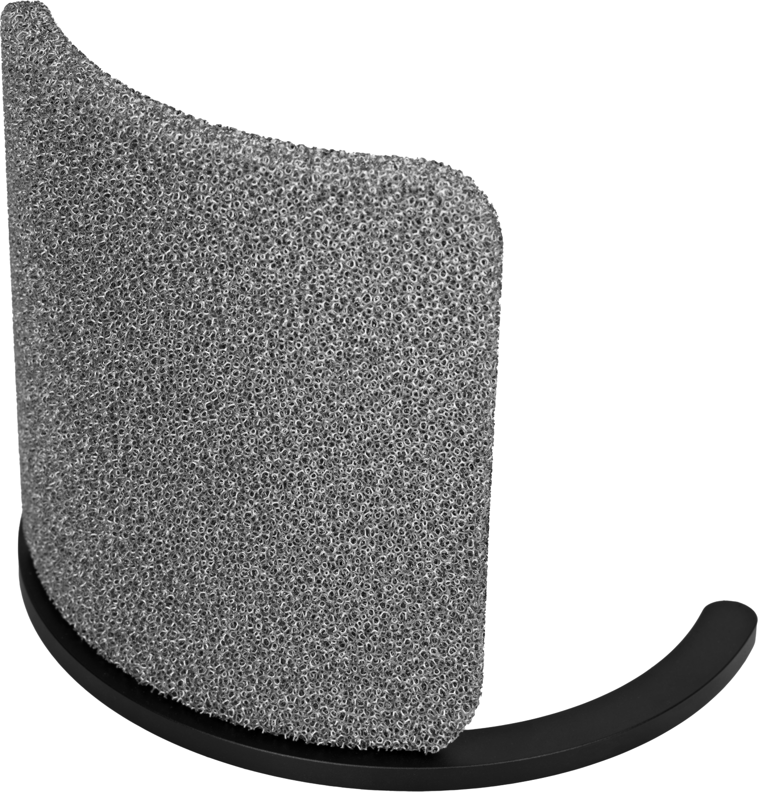 The supplied pop filter can be magnetically fixed to the shock mount in the optimal distance to the OC-S10. By using a frameless metal foam, a strong attenuation of pop and wind noise can be maintained with almost no impact on the frequency response.