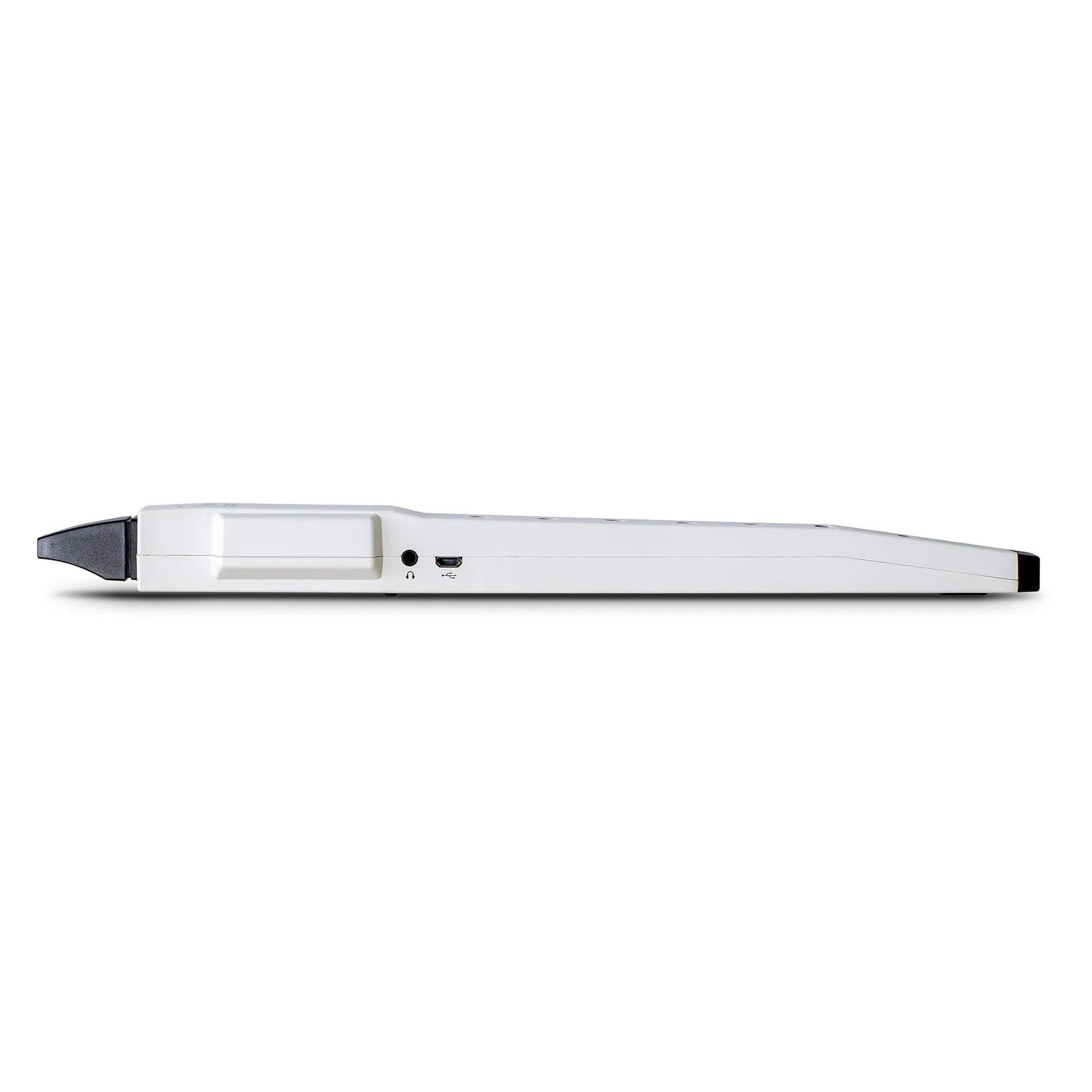 The Carry-on Digital Wind Instrument comes with a soft carry case for easy transportation, and a USB cable for the internal rechargeable battery.