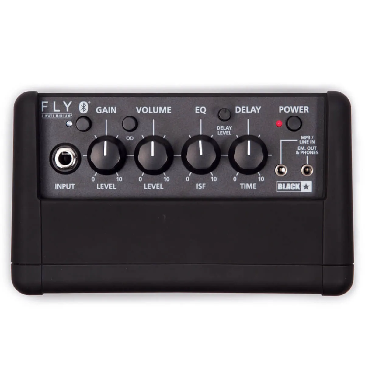 The Blackstar FLY 3 Bluetooth Mini Amp is now available with Bluetooth connectivity for music playback. The FLY 3 Bluetooth mini amp retains all the great tone, flexibility of control and features of the original, but the addition of Bluetooth makes it the perfect take anywhere practice amp and MP3 speaker dock. The FLY 3 combines awesome tone, tape delay effect and ISF controls with a lightweight and compact 3 watt guitar amplifier to give you the perfect mini guitar amp that you can take anywhere. The FLY 3 is a compact mini amp with big functionality and output – the simple yet comprehensive control set allows you to change the sound of your amp with controls for Gain, Equalisation via the Blackstar patented ISF, Delay Time and Delay Level.