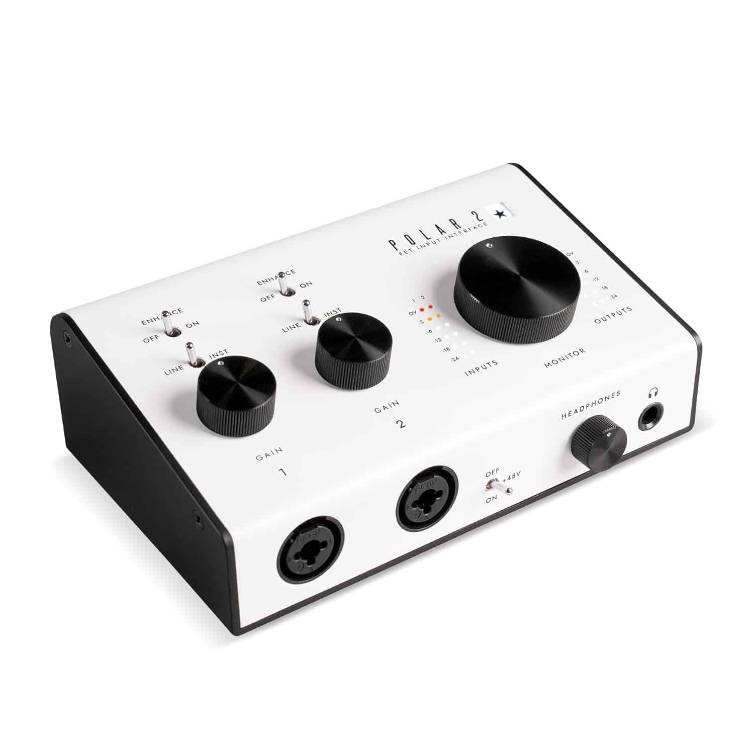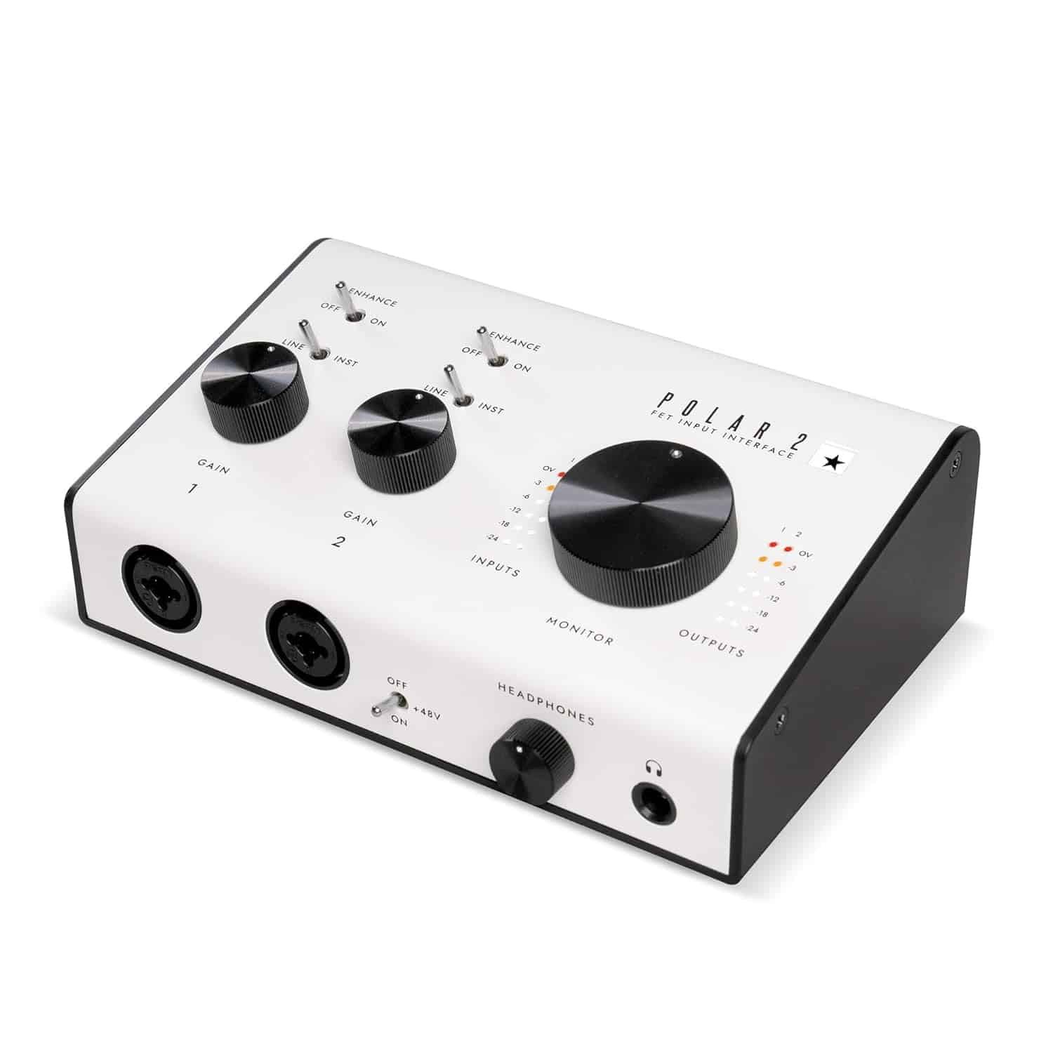 POLAR is the go-to audio interface for guitarists that seek the ultimate recording guitar tone. POLAR 2 is a 2 channel USB audio interface built by guitarists for guitarists. It features 2 high headroom FET input channels for instrument, line and microphone, a high output headphone amp, +48V phantom power for condenser microphones, balanced outputs for professional monitoring, visual level meters and the proprietary “Enhance” switch. POLAR comes bundled with the studio software collection including the full St. James Plugin Suite and everything you need to start recording now! 2 channel audio interface designed for the recording guitarist. High-headroom FET input stage that improves tone and quality of signal and accommodates for wide range of instrument types, effect pedals and microphones. ‘Enhance’ feature that introduces electronics into the signal path that replicate the sound of a classic guitar amplifier ‘Enhance’ completely prevents digital clipping for instrument inputs. Drive this interface like it’s a real amp and be free of the fuss of setting the ‘correct’ levels. ‘Enhance’ on the microphone or LINE inputs gives natural clarity and air to vocal and acoustic guitar performances. The ‘Enhance’ feature negates the need for extra hardware and expensive DI’s to capture high quality guitar signal. It’s all built into POLAR. Comes with the St. James Suite (worth $129/£129/€129), Ableton Lite, ReLab LX480 Essentials, Melodyne Essential and more*. Mic preamp based off of the most renowned vintage studio preamps. Comes with POLAR Control mixing software, giving the control to adjust and fine-tune the levels, panning and routing of your monitoring. Runs on USB 2.0 bus power, with +48V switch for microphones that require phantom power.