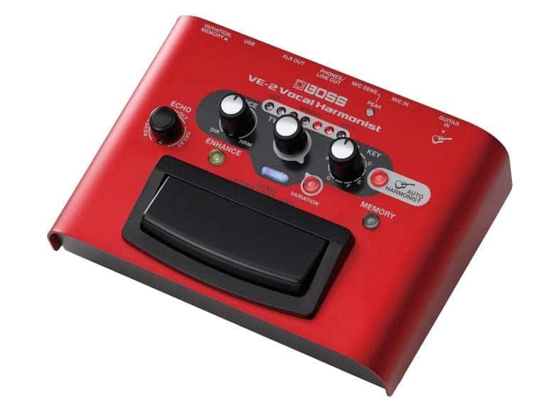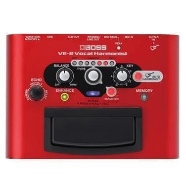 The VE-2 is incredibly intuitive for anyone to use, even for vocalists that have no previous experience with sound equipment. Buttons and knob-based controls make it simple to get great sounds instantly, while the handy LED indicators show the current vocal harmony setting at a glance. The integrated multi-function footswitch allows you to turn harmony on/off or bypass the VE-2’s sound entirely as you perform, and you can even connect up to two optional footswitches for more control if desired. In addition, you can save three favorite sounds in onboard memories and recall them at the touch of button.