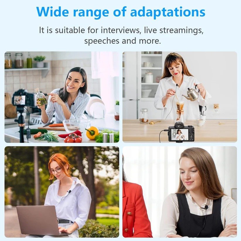 - Professional Microphone : The lapel microphone provides 360 degrees of sound pickup, 50 Hz ~ 20KHz, Signal/Noise: >78 dB , giving you a clear and intelligible voice capture.Designed for use in a wide range of applications including Live stream,Interview,filmmaking, broadcast, streaming and video calls.