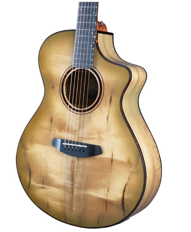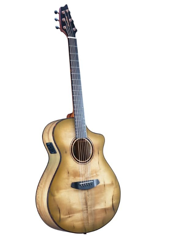 Discover the mesmerising sound of the Breedlove Pursuit Exotic S Concert Sweetgrass CE, a masterpiece crafted with myrtlewood for both body and neck. This concert-sized guitar delivers a balanced, articulate voice with excellent projection and sustain. The myrtlewood construction offers a unique tonal characteristic, blending the warmth of mahogany with the brilliance of maple, creating a versatile instrument suitable for various playing styles. The concert body shape provides exceptional comfort, making it ideal for both intimate performances and extended practice sessions. With its built-in electronics, this guitar seamlessly transitions from acoustic to amplified settings. The Sweetgrass CE model features elegant appointments that complement its sophisticated sound, whilst the carefully selected tonewoods ensure outstanding resonance and clarity. Perfect for musicians seeking a distinctive instrument that stands out both visually and sonically.
