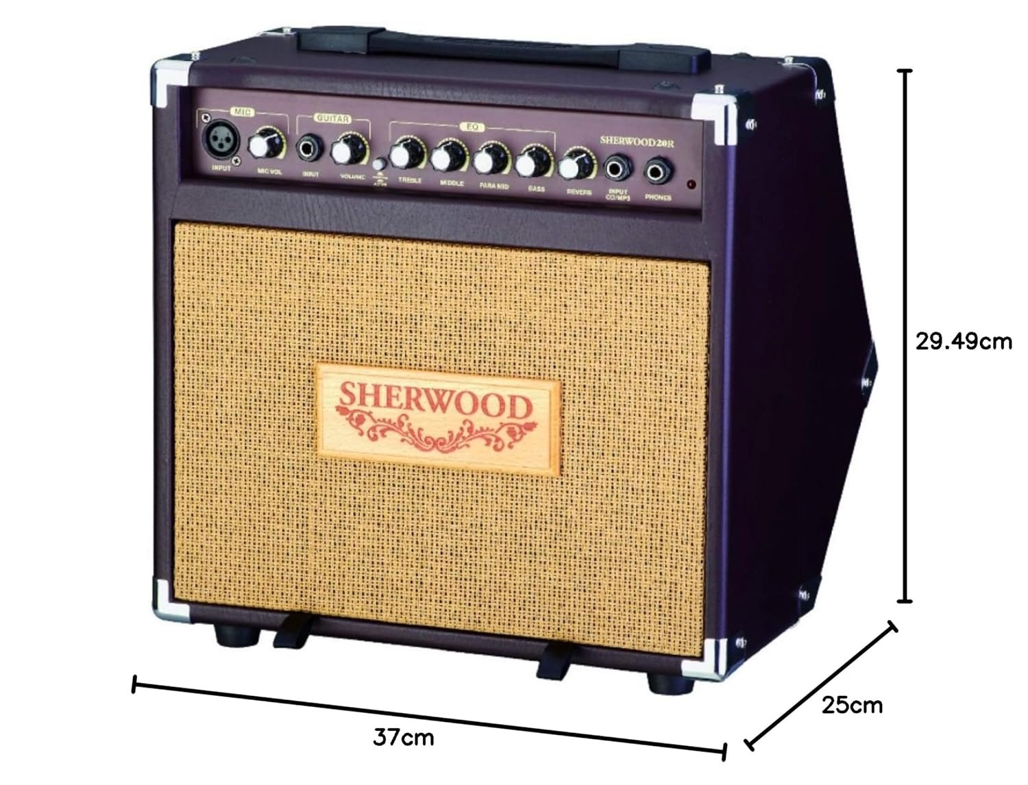 Following on the success of the larger Sherwood 30&60 models, the Sherwood 20R was designed with a range of different small-space uses in mind – and in response to a lot of good input from our customers. At 20 Watts, this model is a perfect tool for the solo artist playing acoustic sets/singing in small venues, bedroom practise and actually seems like a great little amp for those amazing buskers all around the world. With a great price-point, that same warm Sherwood sound and packed with enough features. This new addition to the Carlsbro range should prove to be on a large number of wanted lists.