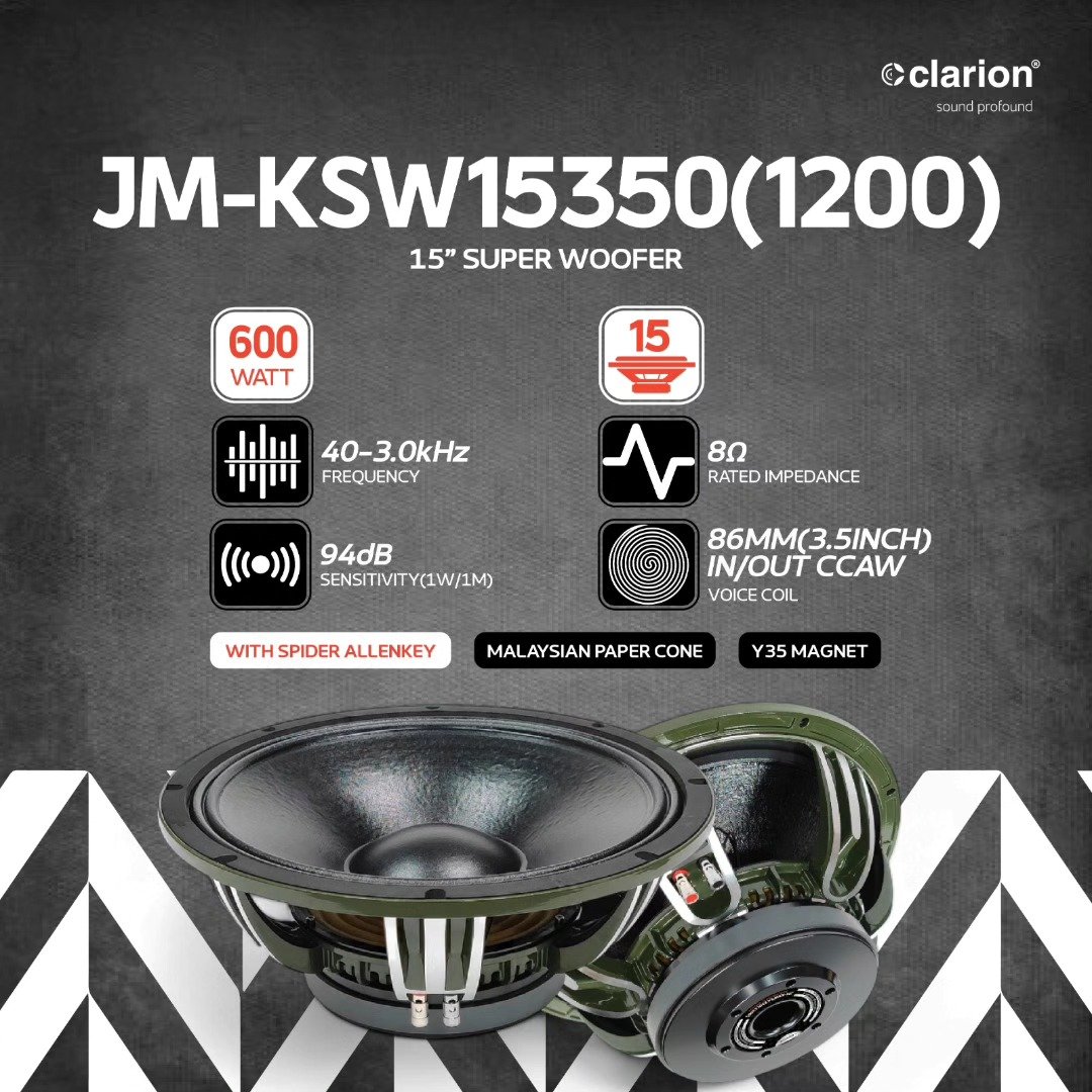 What makes the Clarion JM-KSW15350(1200) stand out compared to other 15-inch subwoofers?