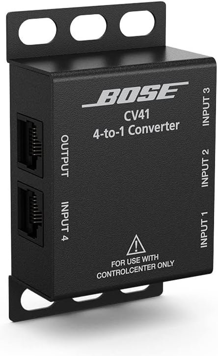Facilitates Homerun Wiring of CC-1 Controllers The Bose ControlCenter CV41 serves but a single purpose: to make your life easier. This 4-to-1 converter simplifies wiring when using multiple ControlCenter CC-1 zone controllers with a PS602 or PS604 PowerShare power amplifier. You get support for up to four CC-1 controllers, enabling each CC-1 to homerun to the amplifier. Here at GearNuts, we appreciate how much the ControlCenter CV41 streamlines designing and deploying multi-zone installed sound systems. The Bose ControlCenter CV41 includes five RJ-45 connectors and accommodates cable lengths up to 2,000 feet.Bose ControlCenter CV41 4-to-1 Converter Features: Simplifies wiring when using multiple ControlCenter CC-1 zone controllers with a PowerShare power amp Supports up to 4 CC-1 controllers Enables each CC-1 controller to homerun to the amplifier Includes 5 RJ-45 connectors Accommodates cable lengths up to 2,000 feet