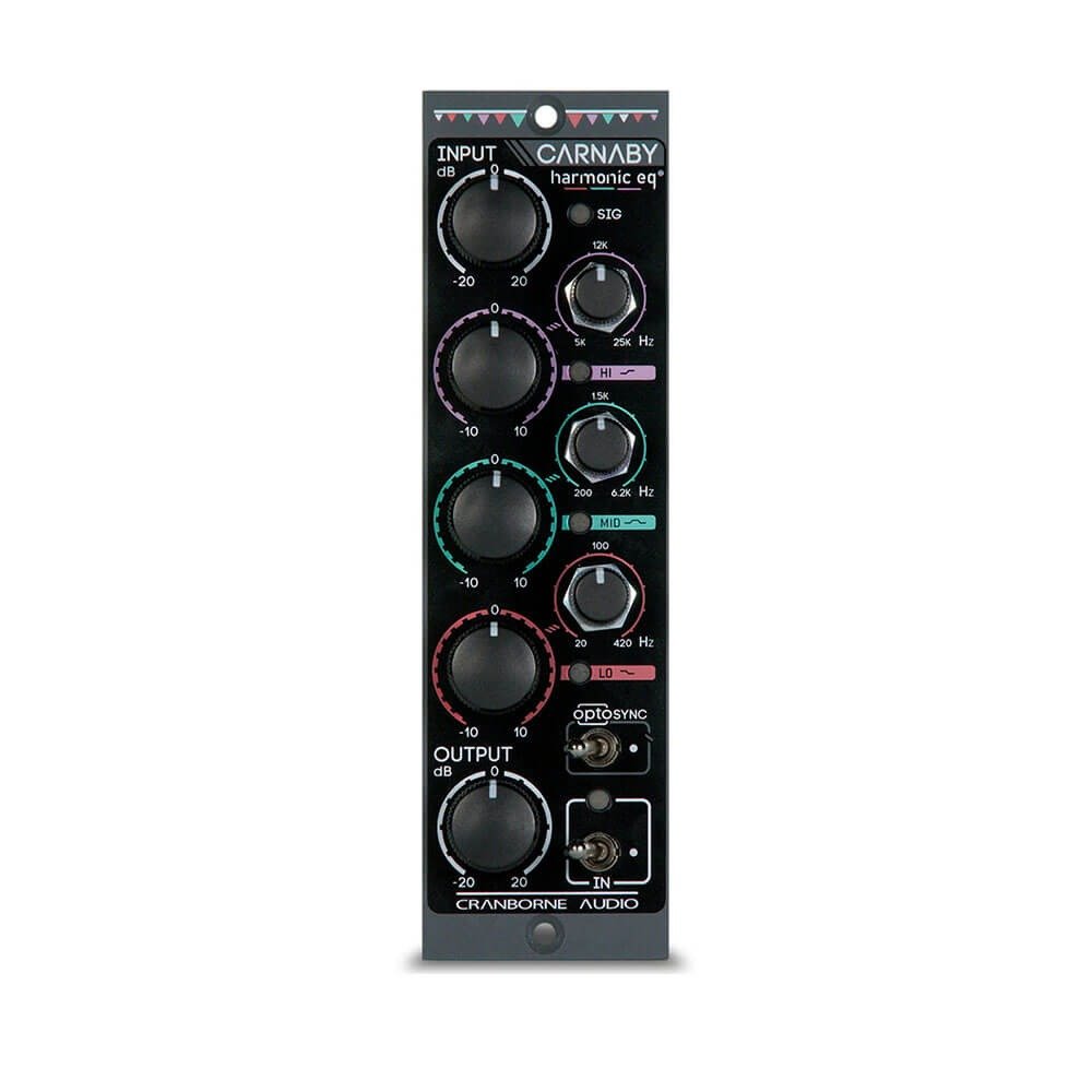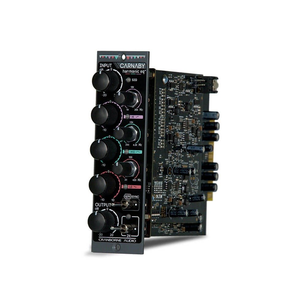 The Cranborne Audio Carnaby 500 Equalizer is a unique 3-band parametric EQ designed for the 500 series format. It introduces a groundbreaking concept called “Harmonic EQ,” which utilizes harmonic saturation to boost and cut frequency content, providing a genuine analog harmonic saturation experience with the control of an equalizer. Here’s a detailed overview of its features: