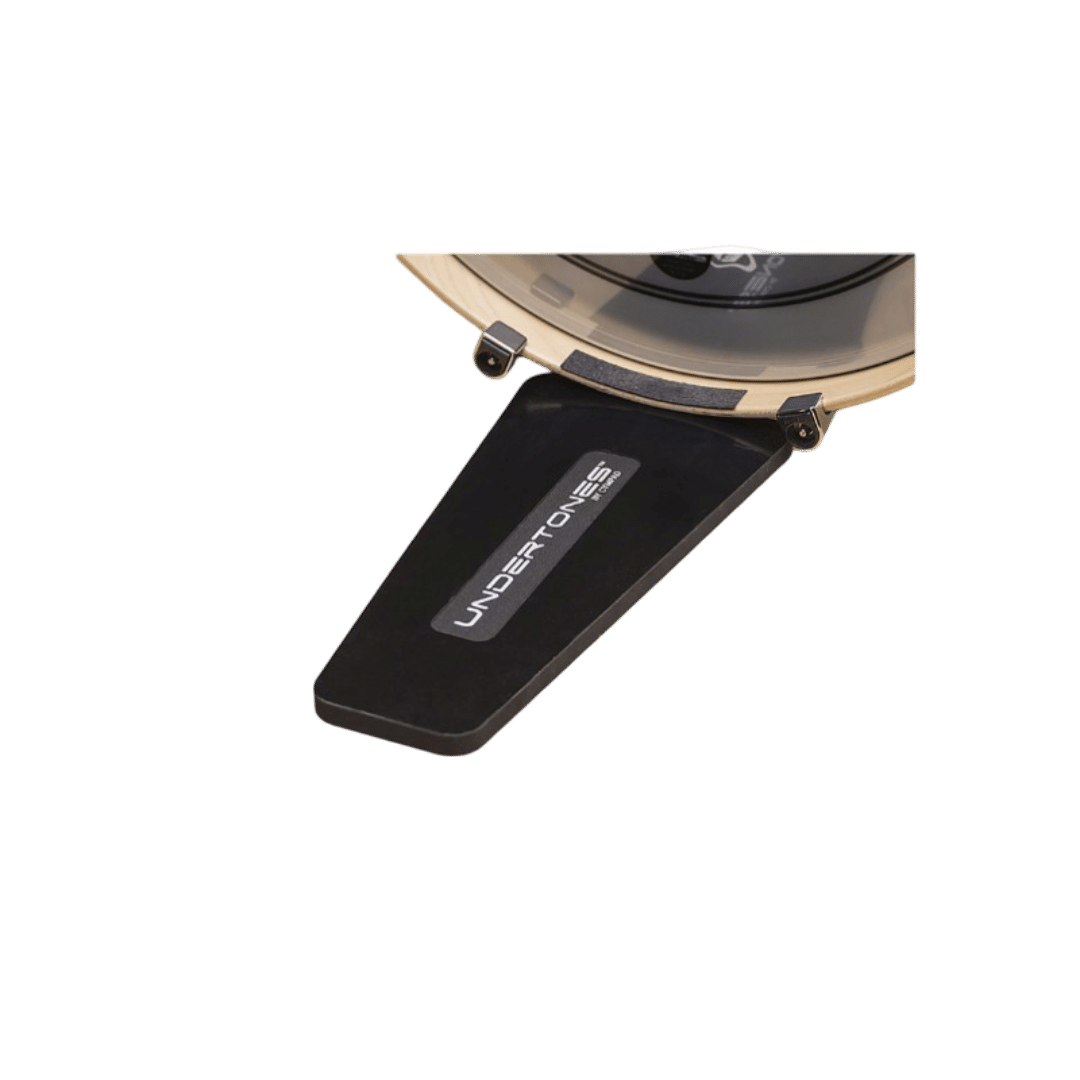 The Undertones system features specially-designed discs tailored for floor tom legs and bass drum spurs, alongside a pad compatible with both acoustic and electronic bass drum and hi-hat pedals. These components work together to de-couple and isolate drums from the floor, significantly boosting sustain and enriching low-end tones.