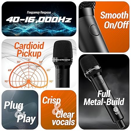 The DIGIMORE D-1070 is a professional dynamic microphone designed for high-performance vocal and live sound applications. Equipped with a moving coil element and supercardioid polar pattern, it ensures excellent voice pickup with minimized ambient noise. Its aluminium metal body makes it tough enough for stage and studio use. This mic comes complete with a 20ft XLR cable for reliable connectivity and a mic holder for convenience. Whether you’re a singer, podcaster, or presenter, the D-1070 delivers clear and powerful sound.