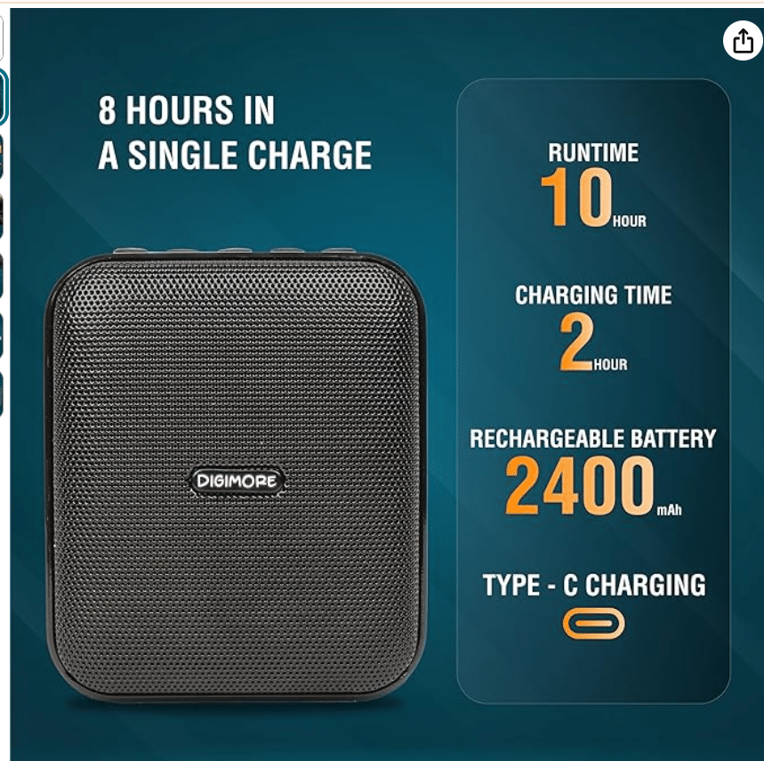 Experience exceptional audio clarity with the Digimore Voice Amplifier, delivering a powerful 10W output that ensures natural, crystal-clear sound. Covering up to 5000 sq. ft., it’s perfect for classrooms, meetings, or outdoor events with 40–100 people. Enjoy the convenience of multiple functions — it doubles as an MP3 player, supporting both TF card and Pendrive playback for effortless entertainment.