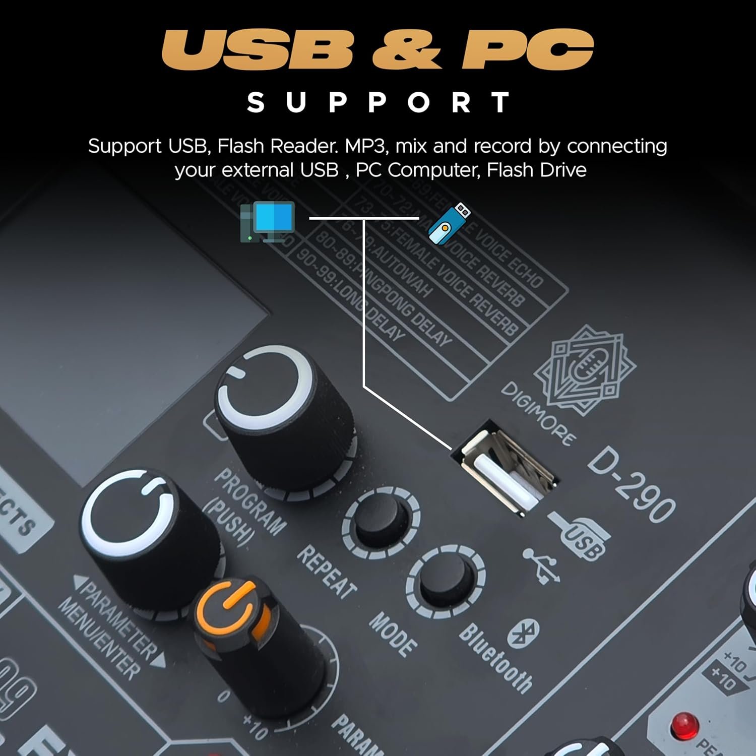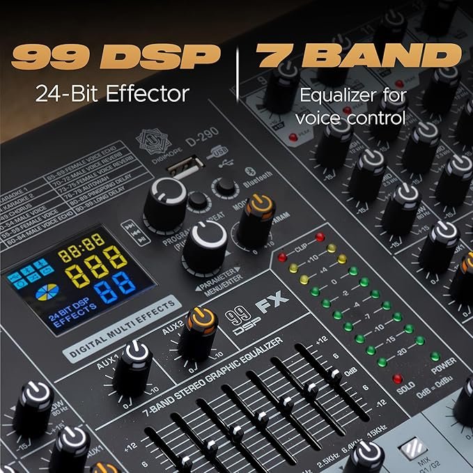 - Advanced DSP with 99 Effects – Includes 24-bit digital FX engine with reverb, delay, chorus & more for rich, professional audio processing on vocals, instruments, and mixes.