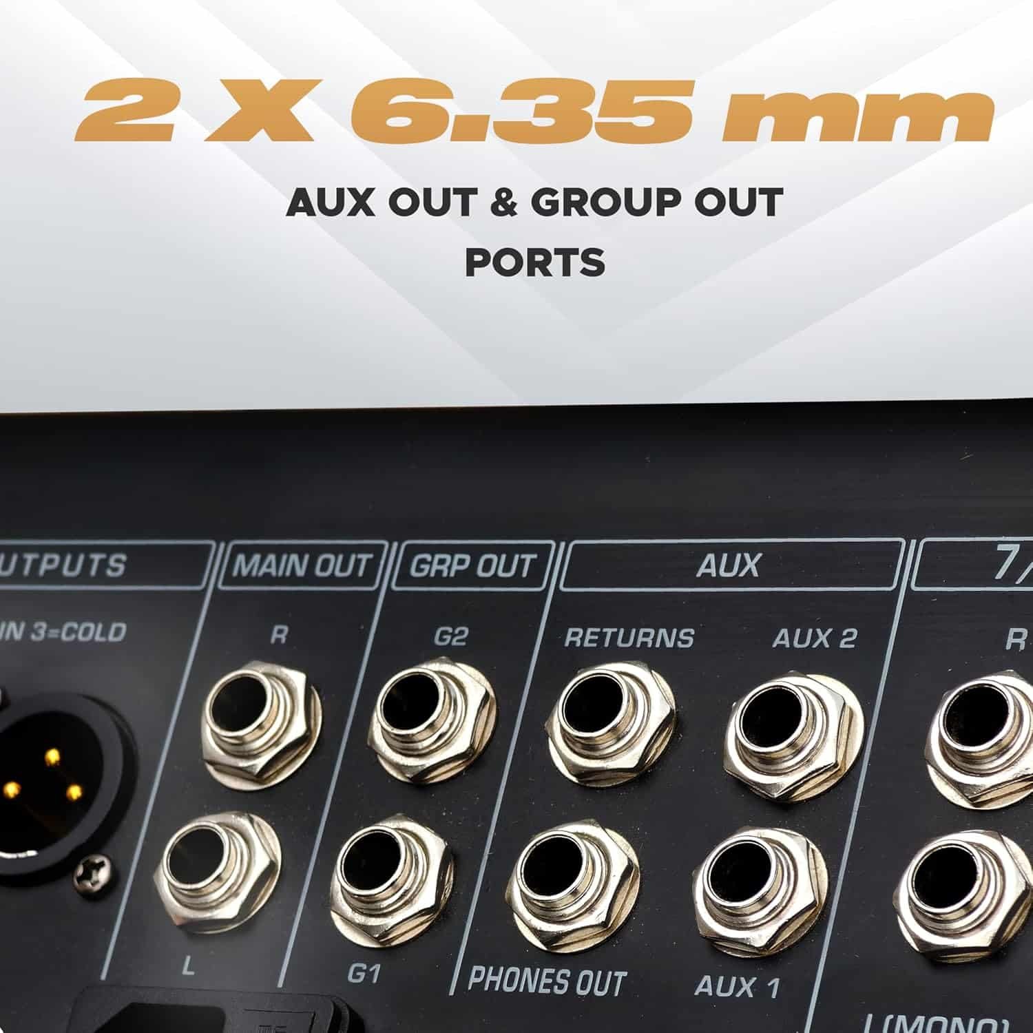 - 7-Band Graphic EQ + 2 Aux & 2 Group Outs – Shape your sound with precision and route mixes efficiently with dual aux sends and sub-group outputs for monitoring or external FX.