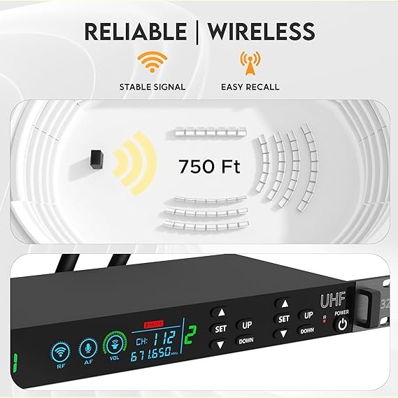 Extended Wireless Range – Covers up to 820ft (250m) for large venues, stage performances, conferences, and outdoor events.