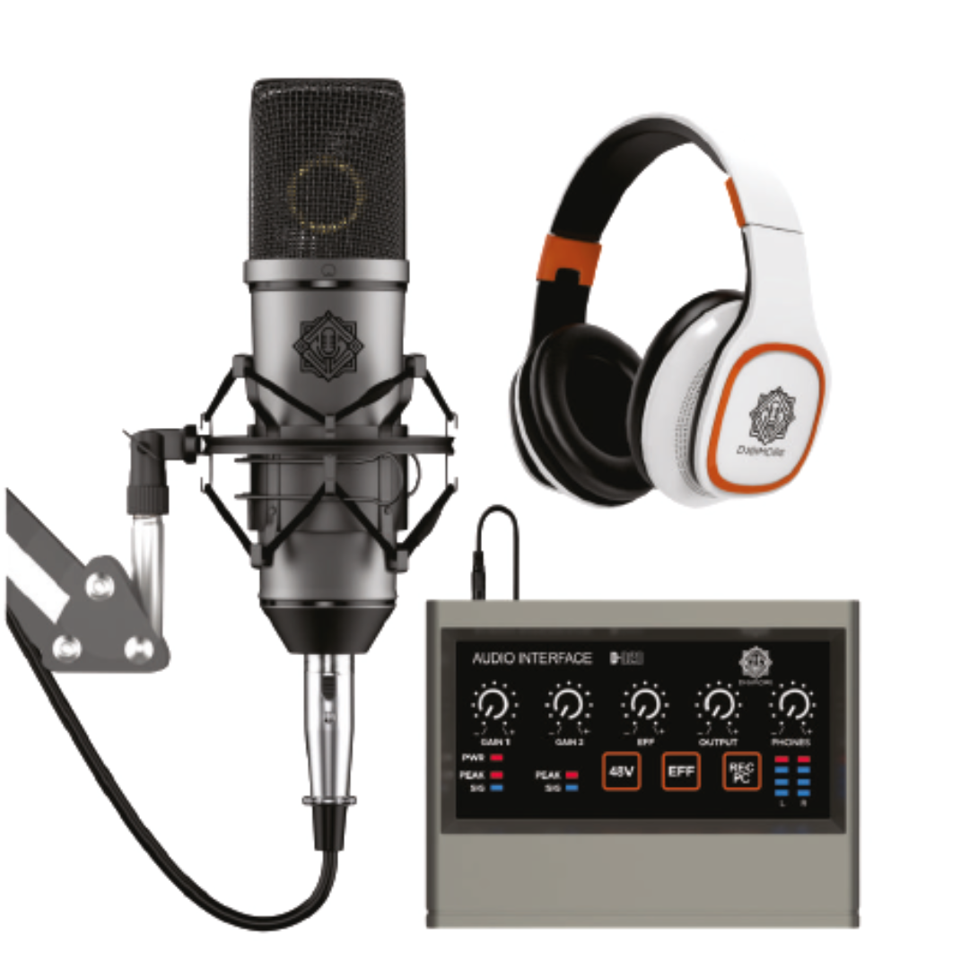 Paired with a dual-channel metal/ABS audio interface, the D-415 supports 24-bit/192kHz sample rate recording, Hi-Z input, and 48V phantom power, making it perfect for both studio and home setups. Compatible with Android, Windows, and Mac OS, it is an excellent choice for musicians, podcasters, and content creators seeking high-fidelity, plug-and-play audio performance.