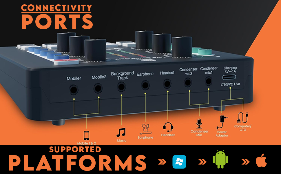 • Rich Sound Effects & 4 Voice Changer: The audio interface mixer has 4 sound variations(Female,Male,Child and Monster)and can produce 12 sound effects. Which is designed for recording,podcasting&live streaming