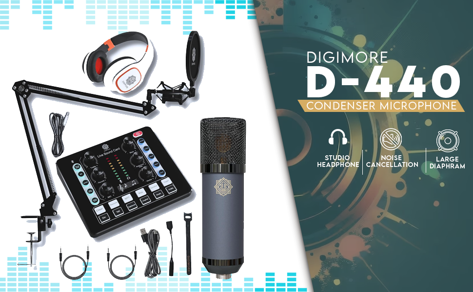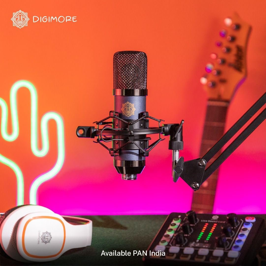 Experience crystal-clear vocal recording with the DIGIMORE D-440 Condenser Mic Studio Kit, designed to capture every nuance with its 26 mm capsule and wide frequency range of 20 Hz to 20 kHz. Its advanced Bluetooth 5.0 connectivity and versatile voice change modes make it perfect for professional studio use or dynamic live streaming. Discover how this compact, high-performance microphone can elevate your audio projects to the next level.