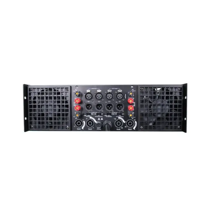 The DIGIMORE D-80A is a high-performance professional amplifier designed to deliver exceptional sound clarity and power. With 2400W per channel at 8Ω, it ensures robust and distortion-free audio output. Featuring Class H circuitry for superior efficiency and reduced heat, it offers a wide 5Hz–50kHz frequency response and THD+N below 0.05% for precise sound reproduction. Its high damping factor (>600) ensures excellent speaker control, while versatile input sensitivity and impedance options provide compatibility with various setups. The durable 3U rack-mount design and advanced cooling system with four fans make it perfect for studios, live performances, and professional audio installations.
