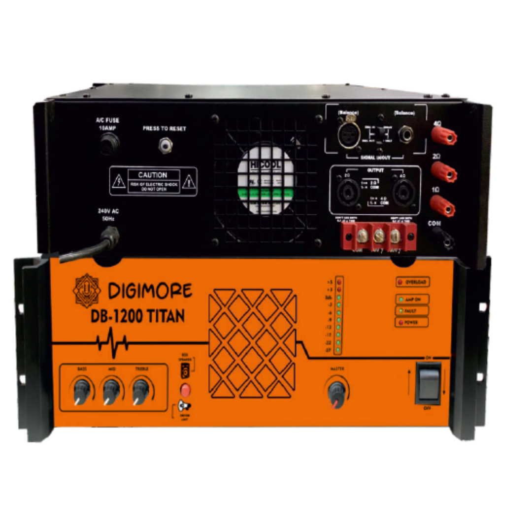 The Digimore DA-1200 Titan stands as a robust, high-performance amplifier that guarantees professional-grade audio clarity, consistency, and endurance for any sound system installation.