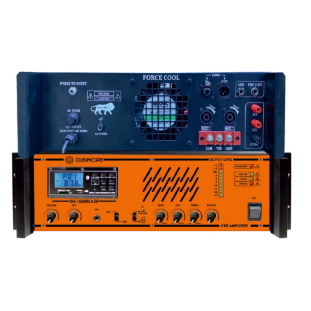 The Digimore DA-1650 BLAZE Professional Amplifier is engineered to deliver superior sound quality and reliable performance for professional audio setups. With a powerful 1800W Max output (1500W RMS at 10% THD), this amplifier ensures clear, distortion-free sound across any venue.