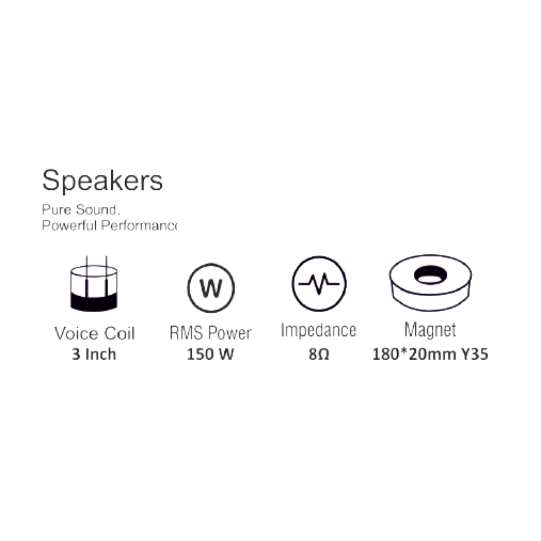 The Digimore DH-890F Speakers are designed for superior sound performance and reliability in professional audio systems. Featuring a 50mm (2″) nominal diameter and 8Ω impedance, they deliver 150W RMS and up to 300W maximum power, ensuring strong output with remarkable sound precision. With a sensitivity of 109dB (1W/1M), these speakers produce crystal-clear highs and balanced mids across a 500Hz–18KHz frequency range. The 75mm (3″) voice coil combined with a 180×20mm ferrite magnet enhances efficiency, durability, and sound quality. Ideal for PA systems, stage monitors, and high-performance installations, the DH-890F offers the perfect blend of power, clarity, and reliability.