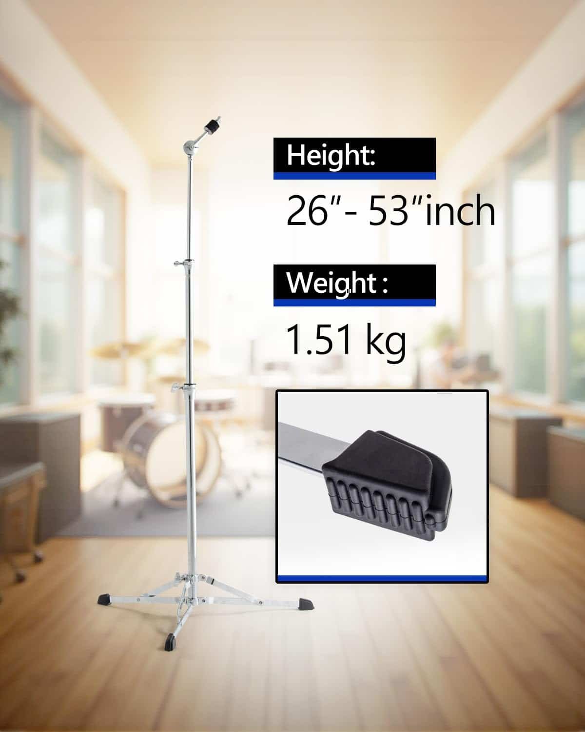 Measuring 56.21 cm in height, the stand positions your cymbals at an ergonomically suitable level for comfortable play and optimal sound projection. The 9.5 cm width base offers a stable foundation to prevent tipping during vigorous performances.