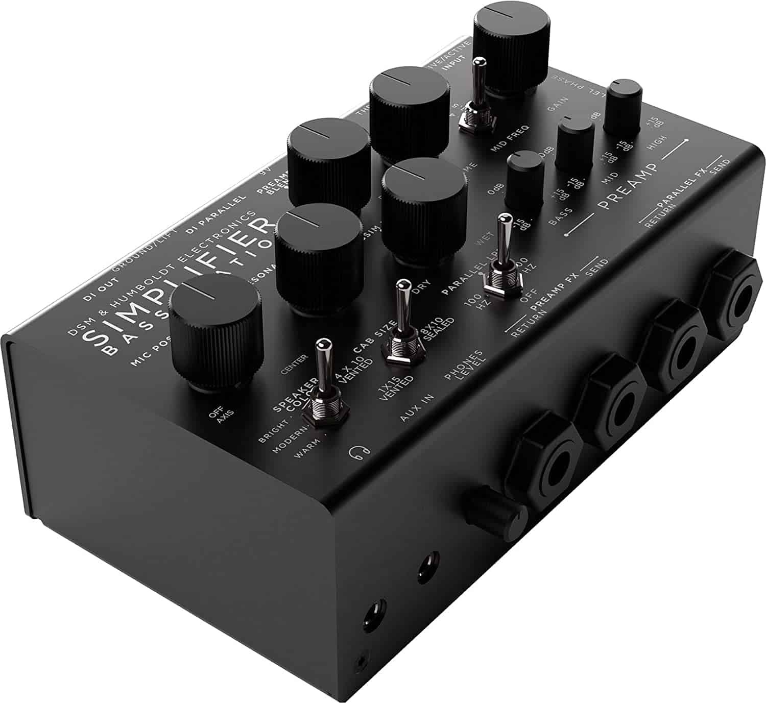 The DSM & Humboldt SIMPLIFIER BASS STATION is everything you ever needed to go direct to the FOH or for recording amazing bass tones without sacrificing anything. It includes a Bass Preamp with gain, level, and a 3-band EQ with semi-parametric mid control, parallel signal routing with a selectable LPF, dual FX loop (for preamp and parallel signal), and an amazing analog cabinet simulation, based on the acclaimed Omnicabsim by DSM Noisemaker.