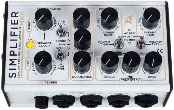 DSM & Humboldt’s beloved Simplifier just got a significant upgrade! The Simplifier mk2 features redesigned preamps, a new Power Amp Drive control, Speaker type knob, Reverb, and a wider gain range. The onboard Plexi, Blackface and AC30 preamps are even more dynamic, and capable of delivering beautiful edge-of-breakup tones! The mk2’s dedicated Power Amp Drive offers even more fine-tuning, with an upgraded Power Type switch and linear through Drive knob. Next, a redesigned Cabsim section replaces the Mic position control for a knob that sweeps between 3 speaker profiles. These can be adjusted for Combo, Twin or Stack voicings. Best of all, DSM Humboldt made sure to include a Plate Reverb for the perfect amount of room control in your setup! If you’re looking to venture into silent stage rigs or need a compact amp solution, the Simplifier mk2 is a must-have.