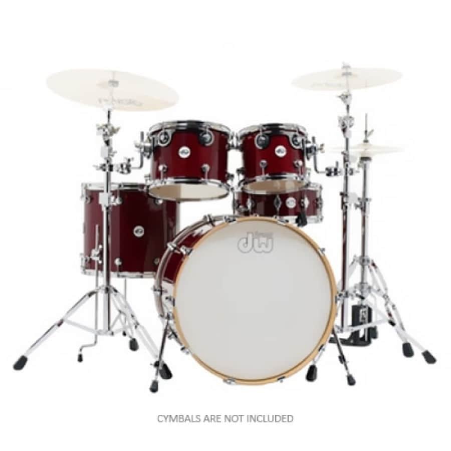 Included hardware (DWCP3000 PKA) ensures robust support and reliable positioning, enabling quick setup and adjustment. Floor tom legs feature full suspension design, reducing unwanted shell contact for improved vibration and sustain. The kit’s gloss lacquer finish in Cherry Satin offers durable protection and a professional aesthetic that stands out on any stage.