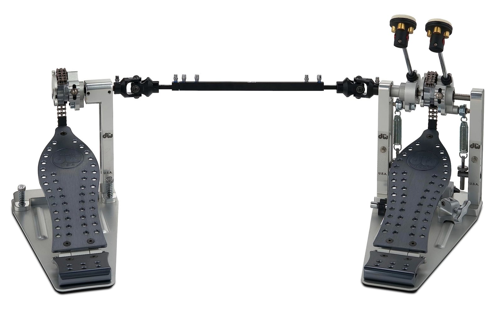The DW Machined Double Bass Drum Pedal represents cutting-edge innovation and performance. Machined from solid aluminum, it features a sleek look, lightweight feel, and incredible durability. The sprocket-less drive cam with shift lever allows drummers to switch between settings instantly for ultimate control. Its perforated aluminum footboard and contoured heel plate provide responsive action with maximum comfort. The interlocking Delta hinge and Tri-Pivot Swivel Toe-Clamp ensure rock-solid stability without damaging bass drum hoops. Built for serious players, this pedal brings unmatched engineering and design to the stage, delivering the speed, precision, and adaptability drummers need.