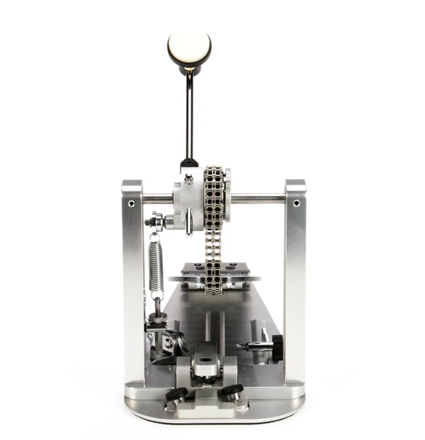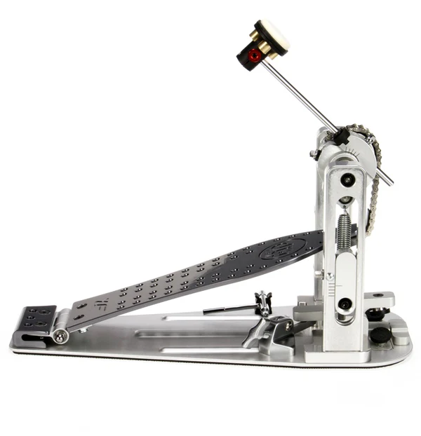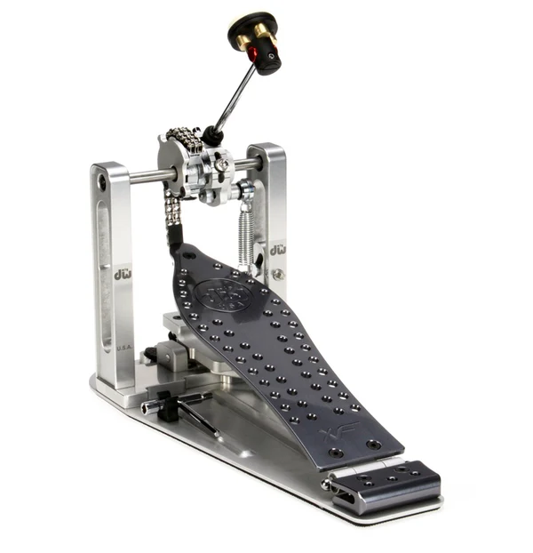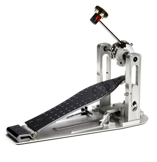 Machined from solid aluminum, the DW MCD Machined Chain Drive bass drum pedal offers you the smooth and precise action of a fully adjustable sprocket-less cam, which lets you quickly shift between popular chain-drive cam settings. Features such as a perforated footboard with contoured heel plate, an interlocking Delta hinge, and a Tri-Pivot Swivel Toe-Clamp give the MCD the feel and handling of a well-tuned race car. The V.E.R.T. Vertical Sliding Spring Adjustment and customizable control beater, which offer adjustable weight/impact and more, all serve to make this one of DW’s finest bass drum pedals.