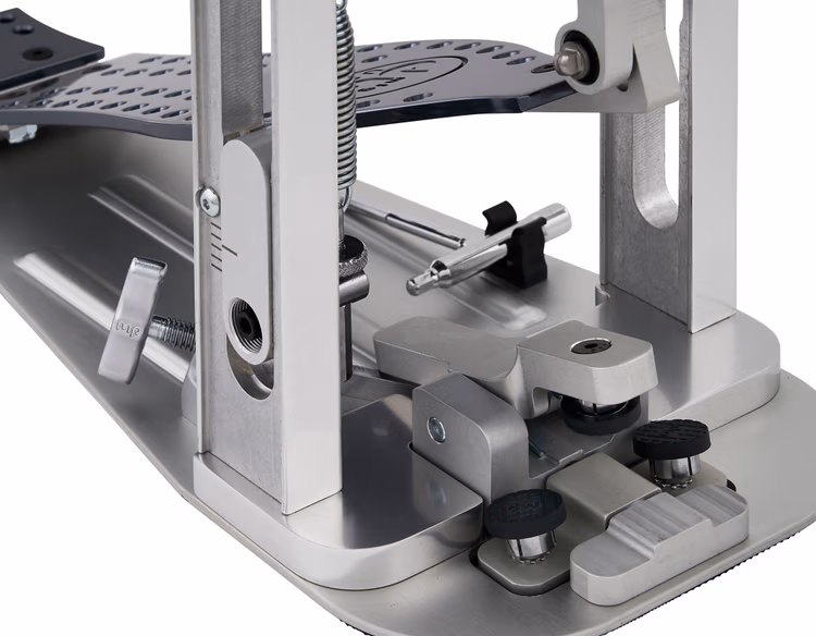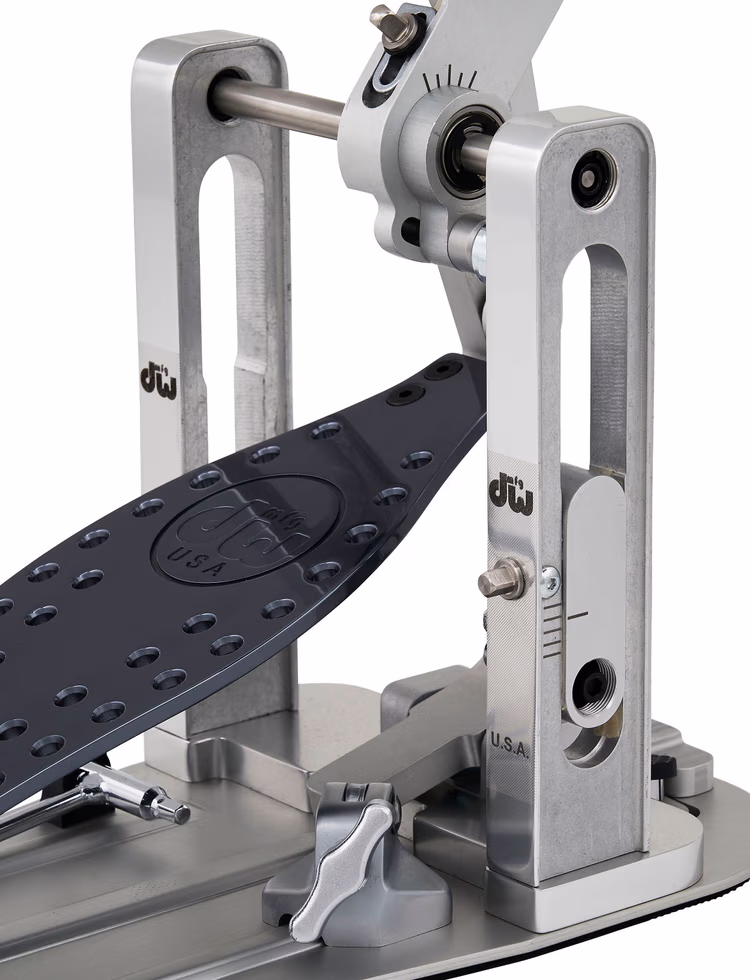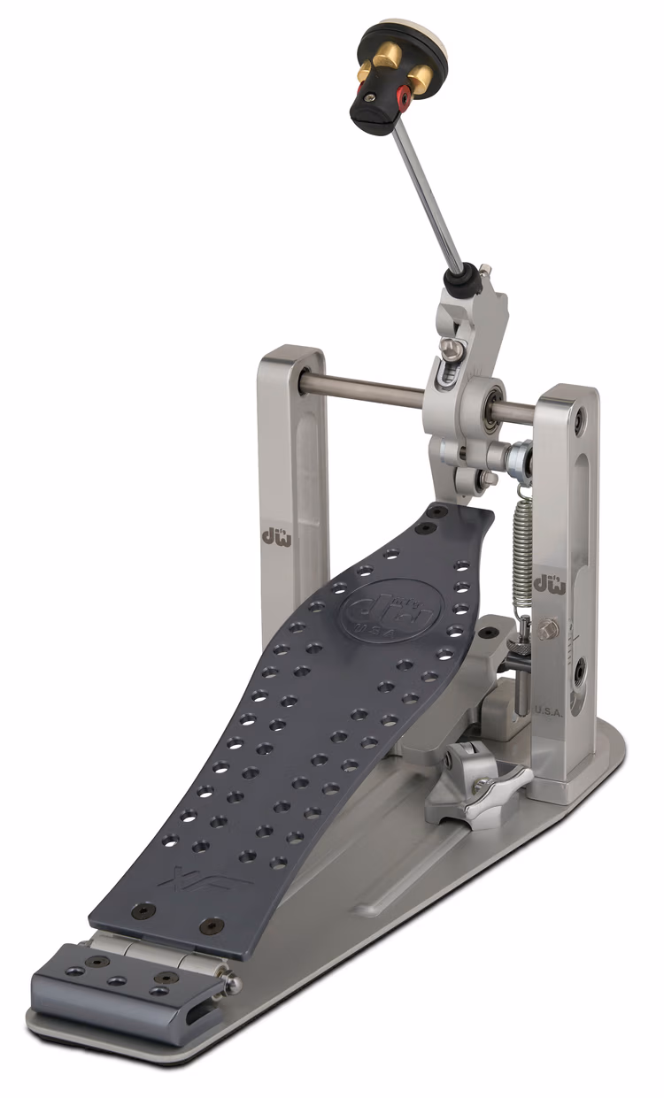 Direct-drive pedals have a solid linkage between the footboard and beater assembly, which obviates the need for a traditional cam. This eliminates the slight lag time that can occur with a chain- or strap-drive model, giving you a quick, responsive feel that’s ideal for any musical style — and particularly appreciated by fleet-footed metal drummers. The smooth surface of the DWCPMDDXF’s perforated solid-aluminum XF footboard is perfect if you’re a drummer who slides your foot forward to play double and triple strokes à la Dave Weckl.