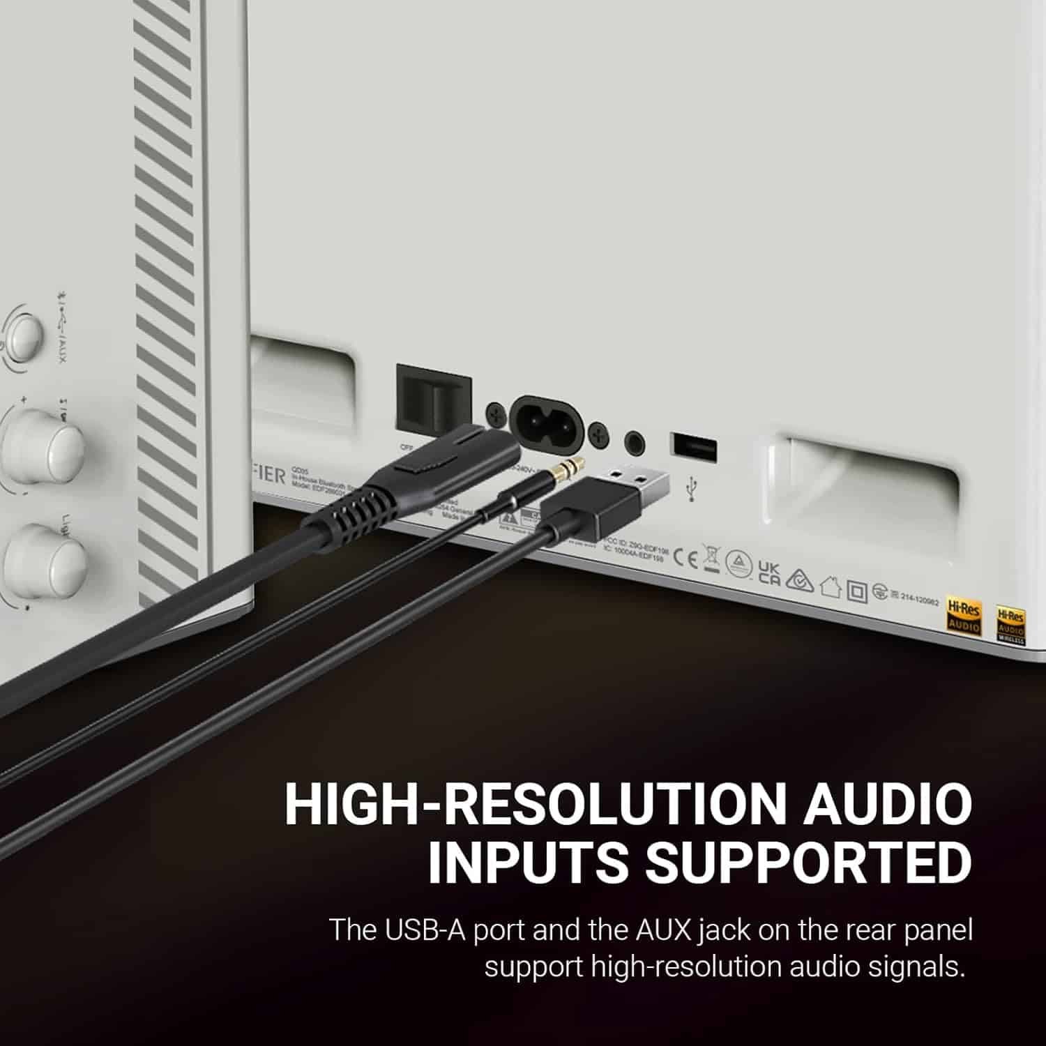 Edifier QD35 Tabletop Bluetooth Speaker white with GaN charger Hi-Res AUDIO and Hi-Res AUDIO WIRELESS certified 40W (RMS) total audio output power Ultra-fast 35W GaN charging via USB-A and USB-C ports Splendid light effects Rich preset EQs and shareable customized EQs Seamless wireless music streaming via Bluetooth V5.3