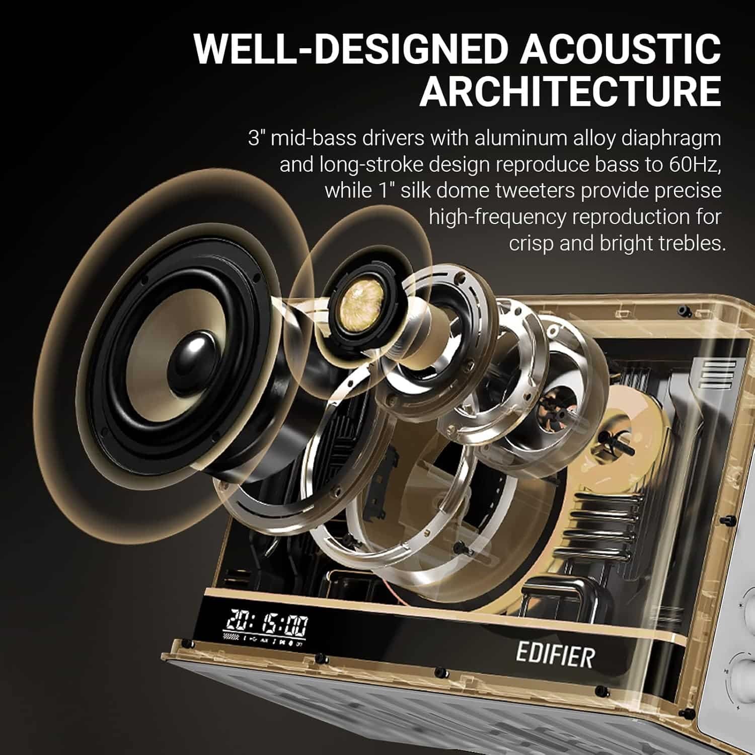 My 3rd Edifier purchase. Very much like this brand. Fantastic quality at a reasonable price point.This tabletop speaker sounds amazing. I have mine in my bedroom on the nightstand and use it every day. Amazed at the audio quality and tuning. Have my base turned up and sounds awesome.