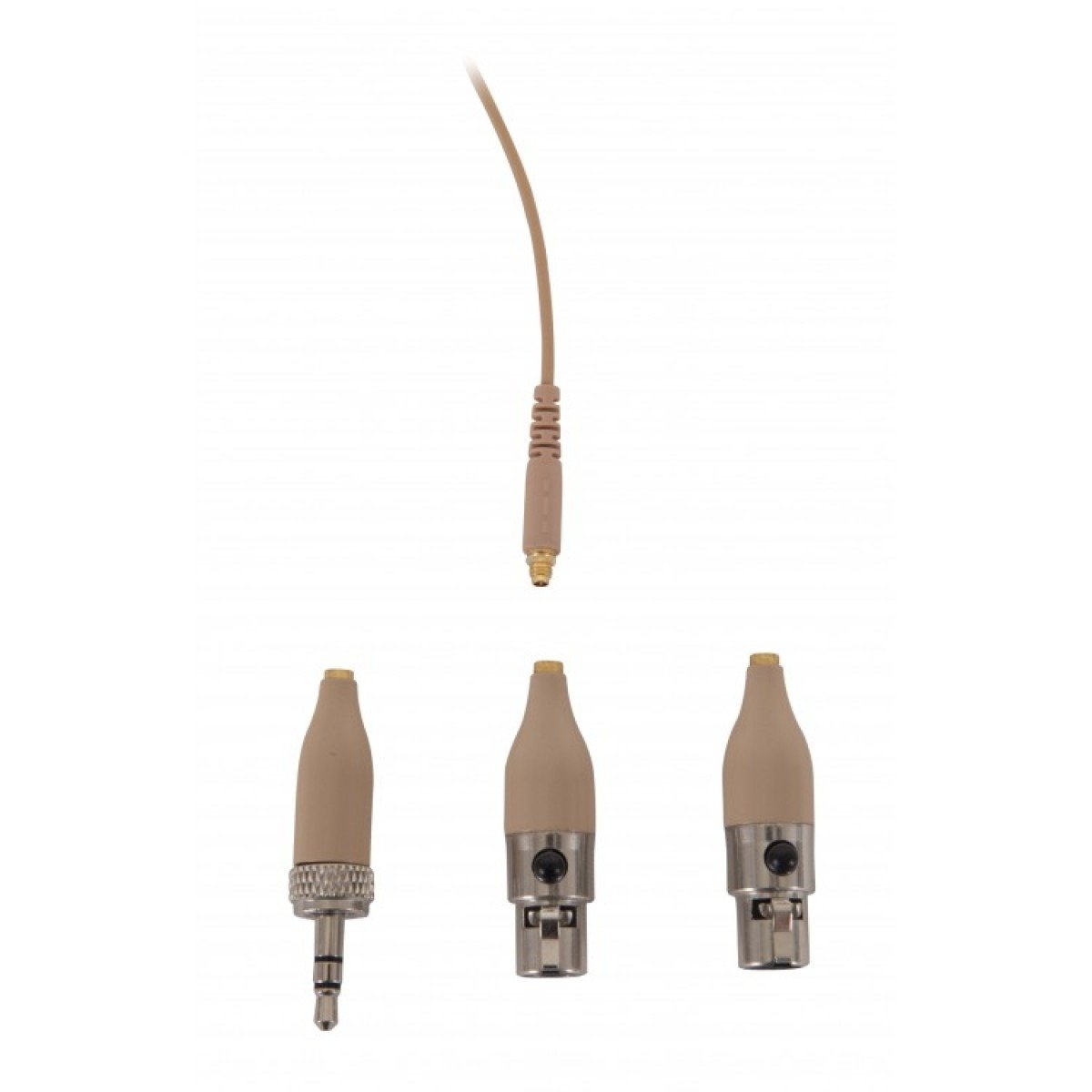 HCM14EK professional condenser headset microphone is ideally suited for vocal sound and speech applications requiring the maximum freedom in movement. The unique tiny size and super light weight provides a comfortable fit for any user. Ergonomically designed to fit comfortably and easily. Great for video recording use, the headset microphone is almost invisible. The microphone provides excellent off-axis rejection in high-SPL situations. It comes with 3 different replaceable connectors making it ideal for use with belt-pack transmitters from various manufacturers.