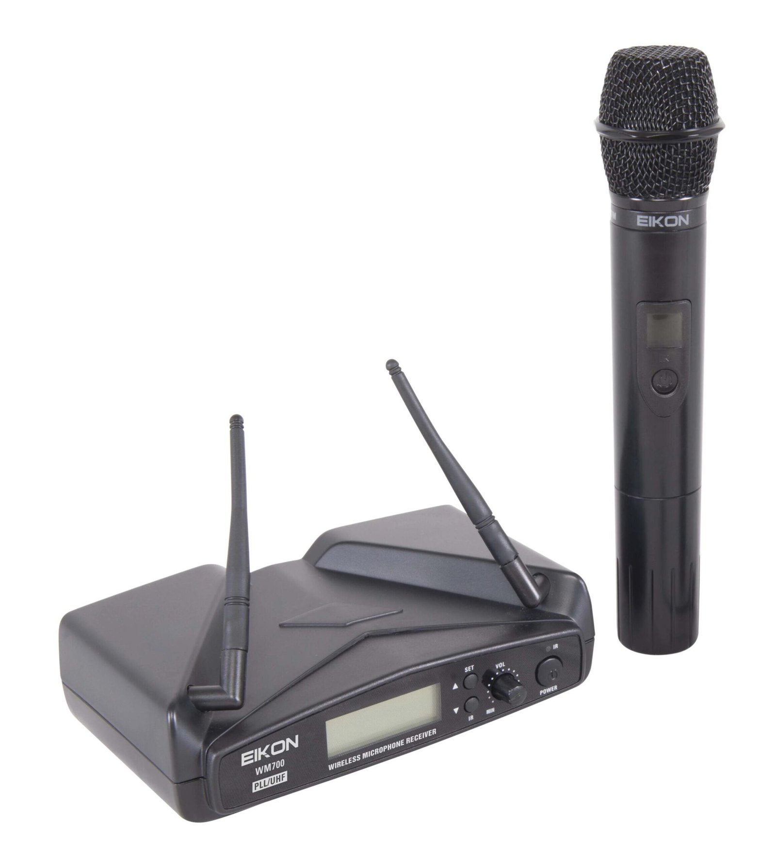 The WM700 wireless microphone system offers 5 different combinations with single channel receiver, dual channel receiver, handheld transmitter and bodypack transmitter with headset microphone.