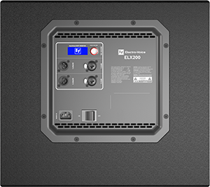 settings), visual monitoring of limiter status, input level control and meters, and master volume control to ensure optimal gain structure. ELX200 powered models are ideal for portable and installed applications, with lightweight and compact 15-mm wood enclosures, integrated M20 threaded pole polemount plate, and two-handle design for easy lifting.