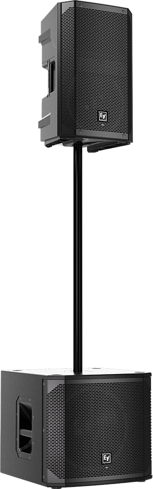 ELX200-12SP features high-efficiency Class-D power amplifiers (up to 1200 W) with integrated QuickSmartDSP, and delivers up to 129 dB SPL utilizing transducers designed and engineered by EV (12-inch EVS-12L woofer). Powered subwoofer models allow easy setup via three presets (Music, Live, Club), sub/top system-match crossovers, three-band EQ, five user-programmable presets (Store and Recall