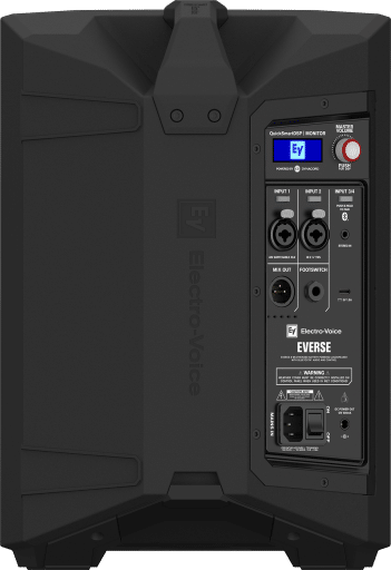 EVERSE 8 is driven by a high-efficiency Class-D amplifier and DSP module developed in collaboration with the world-class audio electronics engineering team at EV’s sibling brand Dynacord. Pro features include a built in four-channel digital mixer with studio-quality effects and processing, 48 V phantom power, feedback suppression and audio ducking. Between the EV and the D badges, you get the best of both worlds.