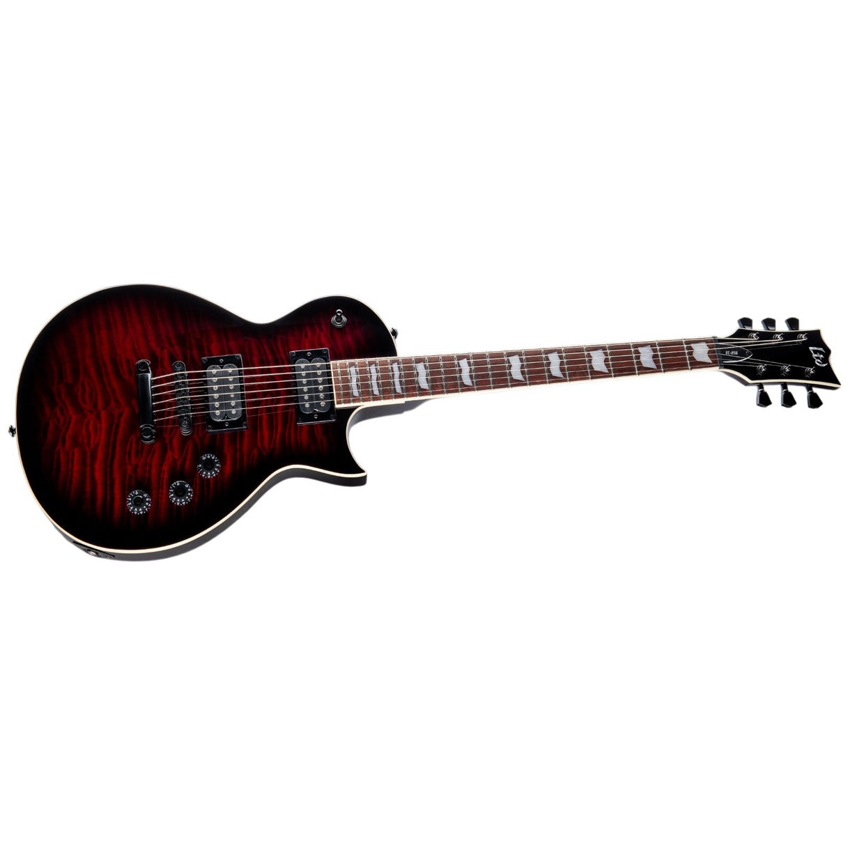 If you’re looking for a value-packed guitar that will deliver much more than you expect for its modest price, the obvious answer is the LTD EC-256. A classic single-cutaway shape that’s excellent for all musical styles and genres, the EC-256 is available in multiple finishes and offers features that you normally associate with high-end guitars, like binding on the body, neck, and headstock, and reliable set-neck construction. The EC-256 also features a mahogany body, a comfortable three-piece thin U-shaped mahogany neck, and a roasted jatoba fingerboard with ESP flag inlays and 22 extra-jumbo frets. This guitar features a set of our acclaimed ESP LH-150 humbucking pickups in the bridge and neck positions, now offered with new great-looking matte black covers and providing punchy, great tone for all genres of music. You also get the flexibility of single-coil tones controlled by a push-pull switch on the tone knob.
